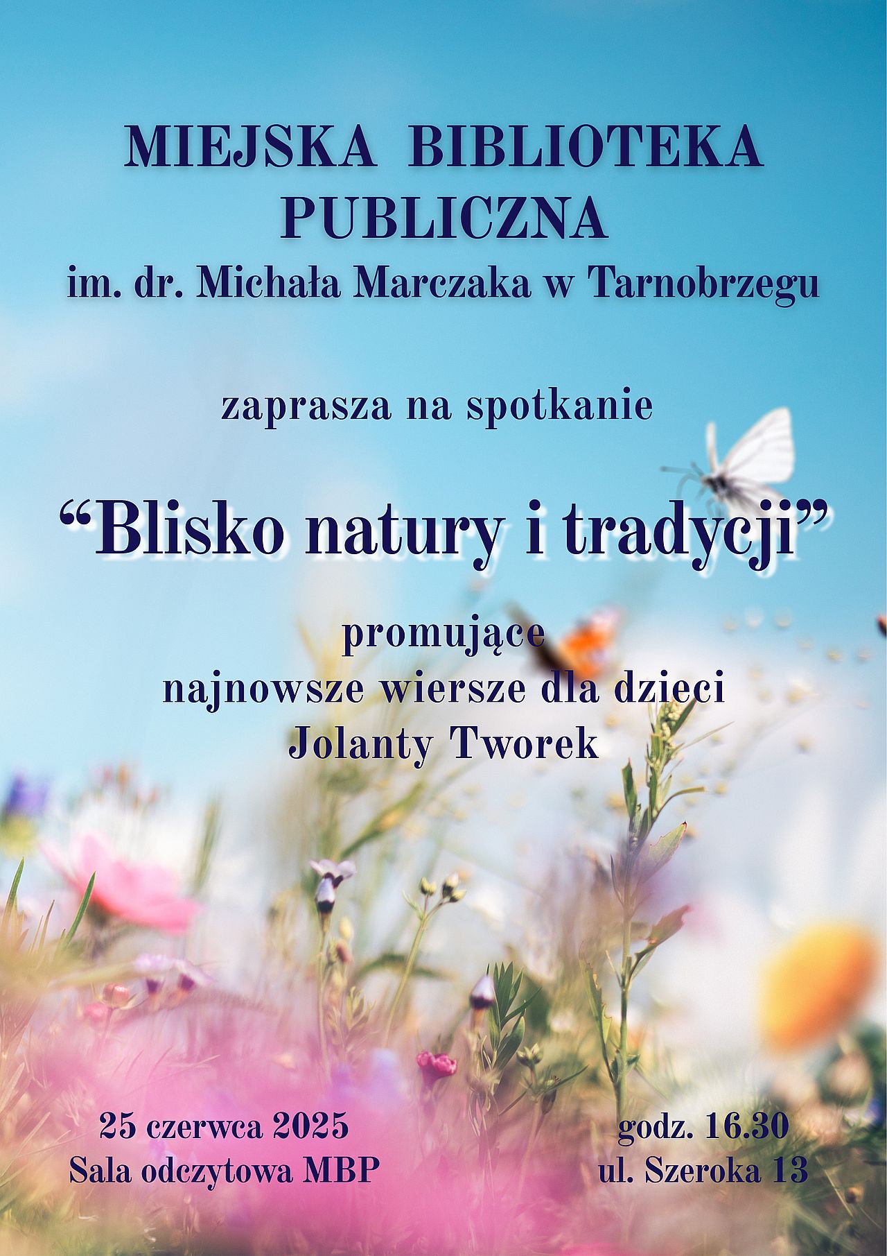 W środowe popołudnie, 25 czerwca 2025 roku o godz. 16.30 w Bibliotece Głównej odbyło się spotkanie autorskie z tarnobrzeżanką Jolantą Tworek – nauczycielką przedmiotów przyrodniczych, autorką tomików wierszy dla młodszych i starszych czytelników, miłośniczką przyrody, którą chętnie podgląda i fotografuje zarówno w najbliższej okolicy, jak i w dalekich zakątkach świata.
