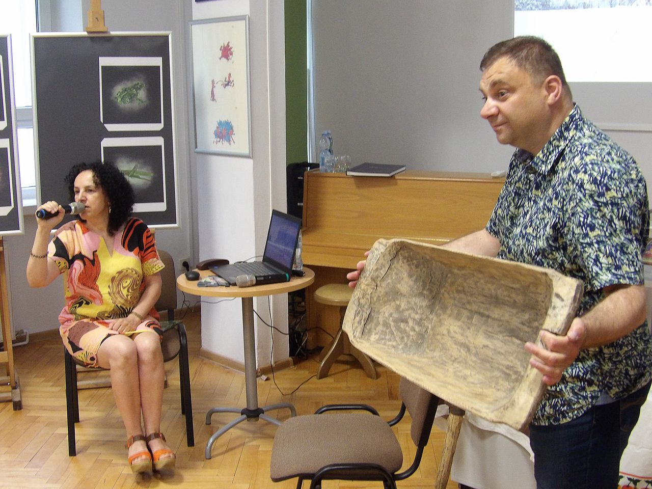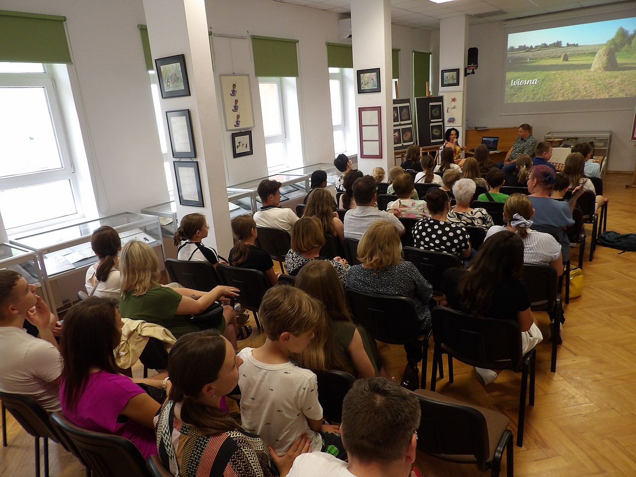 Spotkanie stało się wspaniałym pretekstem, nie tylko do promocji najnowszych wierszy autorki, ale także do poznania ciekawostek ze świata przyrody. Dzieci dowiedziały się, że kiedyś życie na wsi podporządkowane było porom roku, które determinowały prace polowe. Miały również okazję zobaczyć kawałek wsi na zdjęciach zrobionych przez panią Jolantę oraz dawne sprzęty codziennego użytku w dawnym gospodarstwie domowym, tj. bat, kanka, makutra, niecka czy lampa naftowa. Natomiast dorośli mogli wrócić do czasów swojego dzieciństwa i przywołać rzeczywistość, która odchodzi w zapomnienie. Najnowszy tomik "Wiersze z wiejskiego podwórka” to właśnie wspomnienia z dzieciństwa opowiadające o zwyczajach i codziennej pracy na wsi, gdzie autorka się urodziła i wychowała. Na spotkaniu prezentowane były także książeczki dla najmłodszych z serii "Poznaj świat z Kotkiem Psotkiem”. Spotkanie poprowadził Piotr Duma - radiowiec, dyrektor GOK w Gorzycach, autor i wydawca książek.