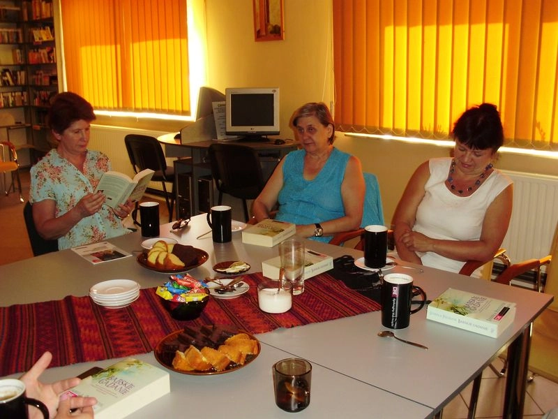 W wakacyjnym nastroju przebiegło czerwcowe spotkanie naszego klubu, na którym rozmawialiśmy o książce Izabeli Pietrzyk „Babskie gadanie”. Iza, główna bohaterka książki jest rozwiedzioną czterdziestokilkuletnią kobietą , która wykłada język rosyjski na Uniwersytecie Szczecińskim, ma własne mieszkanie, dorastającą córkę Felę , psa Sambę i przyjaciółki, na które zawsze może liczyć. Pewnego dnia na spacerze z psem poznaje policjanta Czarka , z którym nawiązuje romans. Relacja ta , choć szybko przeradza się w mocne uczucie, stawia Izę w nowej, skomplikowanej roli - bycia tą trzecią, bo jak się okazuje jej partner jest żonaty.