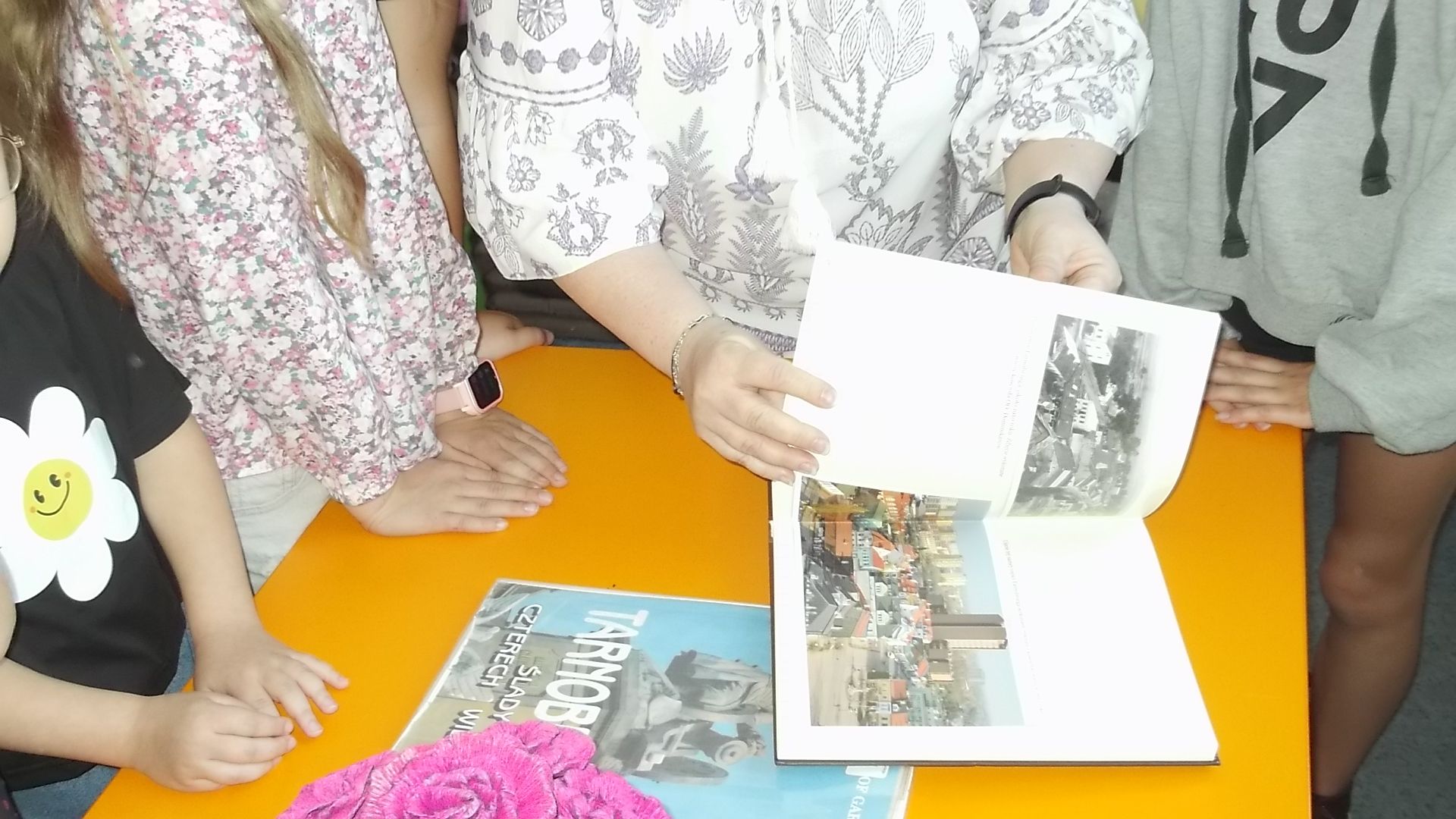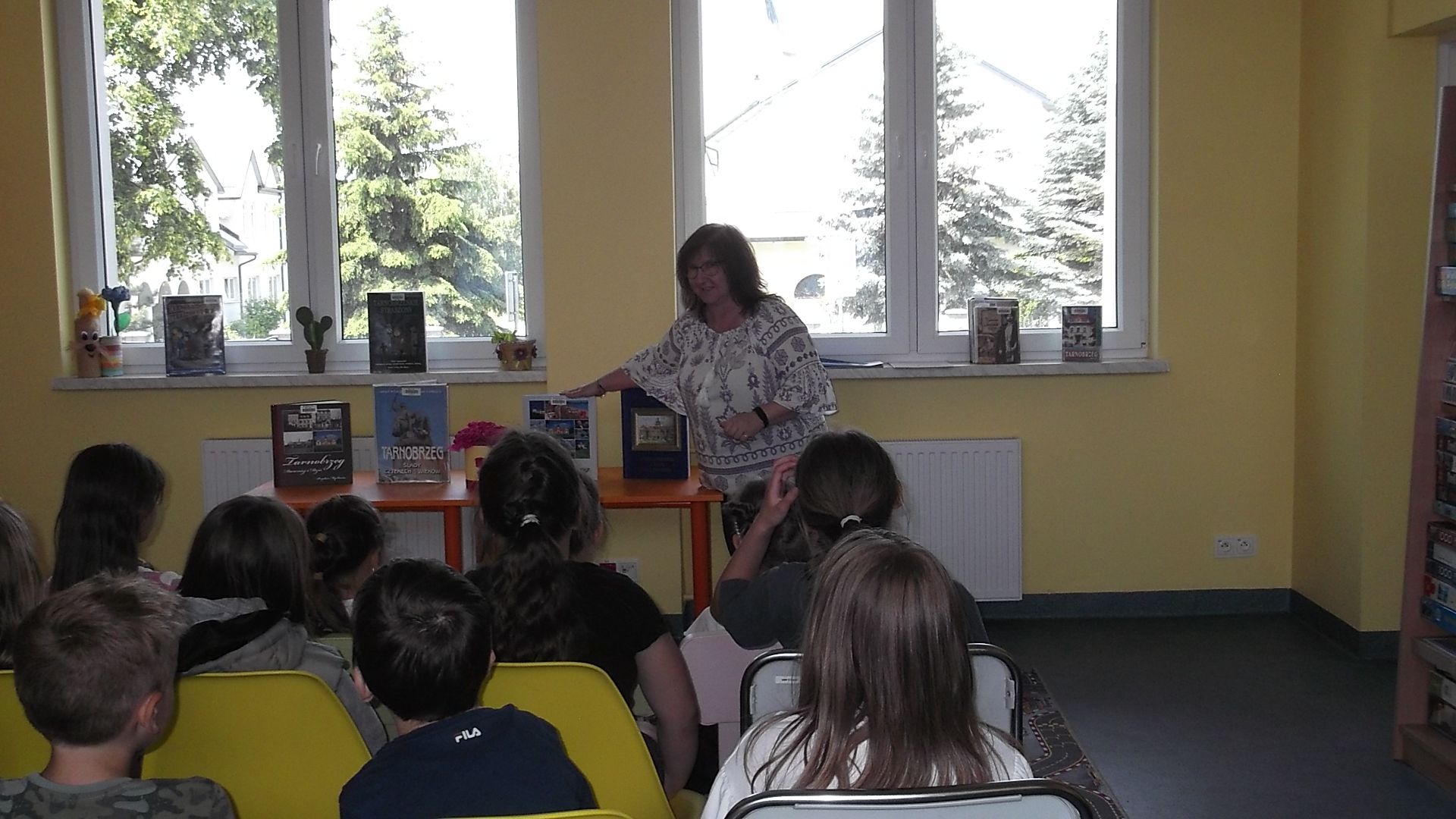 Dni Tarnobrzega nie przeszły w Bibliotece bez echa – by uczcić święto naszego miasta w filiach zorganizowano szereg wyjątkowych spotkań, podczas których słowo Tarnobrzeg zostało odmienione przez wszystkie przypadki. W Filii nr 1 odbyły się wyjątkowe zajęcia literacko-plastyczne z udziałem uczniów, którzy wysłuchali fragmentów książki "Legendy z Tarnobrzega i okolic” autorstwa Doroty Kozioł, poznając fascynujące opowieści związane z historią i tradycją naszego miasta. Zainspirowani przeczytanymi legendami, uczniowie przystąpili do twórczej pracy – projektowania własnych herbów Tarnobrzega. W ich pracach pojawiły się zarówno motywy znane z miejskiej heraldyki, jak i autorskie pomysły odzwierciedlające dziecięcą wyobraźnię i lokalny patriotyzm. W Filii nr 3 uczniowie wędrowali "Śladami przeszłości do teraźniejszości”. Wcielali się w rolę przewodników oprowadzających po ciekawych i mających swoją historię miejscach Tarnobrzega, dzięki czemu „odwiedzili” Plac Bartosza Głowackiego, Klasztor o.o. Dominikanów, kościół pod wezwaniem św. Marii Magdaleny w Miechocinie, Zamek Dzikowski. Na zamku zatrzymali się nieco dłużej, zapoznając się z rodziną Tarnowskich, a przede wszystkim z historią herbu Tarnobrzega – Leliwa. Z kolei w Filii nr 4 zaproszona młodzież wyruszyła w podróż „Tropami tarnobrzeskich Straszonów” – ta gra planszowa pozwoliła poznać najciekawsze zakątki Tarnobrzega. W Filii nr 6 odbyły się dwa spotkania, podczas których uczestnicy dowiedzieli się o historii miasta oraz wysłuchali kilku bajek Stanisława Jachowicza, znanego bajkopisarza i pedagoga urodzonego w naszym mieście, autora między innymi bajki pt. „Chory kotek”. W ramach cyklu Strefa kreatywności, dzieci wykonały kolaże zawierające zdjęcia, hasła, tytuły związane z Tarnobrzegiem. Także bibliotekę na os. Dzików odwiedzili uczniowie, którzy poznali historię swojego osiedla. Dowiedzieli się skąd wzięła się jego nazwa, kim są patroni ulic oraz, co ciekawego na nim można zobaczyć. Poznali fragmenty książek Stanisława hr. Tarnowskiego "Domowa kronika dzikowska", Jana Słomki "Pamiętniki włościanina" i Michała Marczaka "Z dziejów miasta i powiatu", które opisują jak wyglądało życie na dworze i w wiejskiej chacie. Na zakończenie spotkania dzieci z dużym zainteresowaniem obejrzały albumy o Tarnobrzegu.