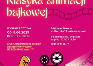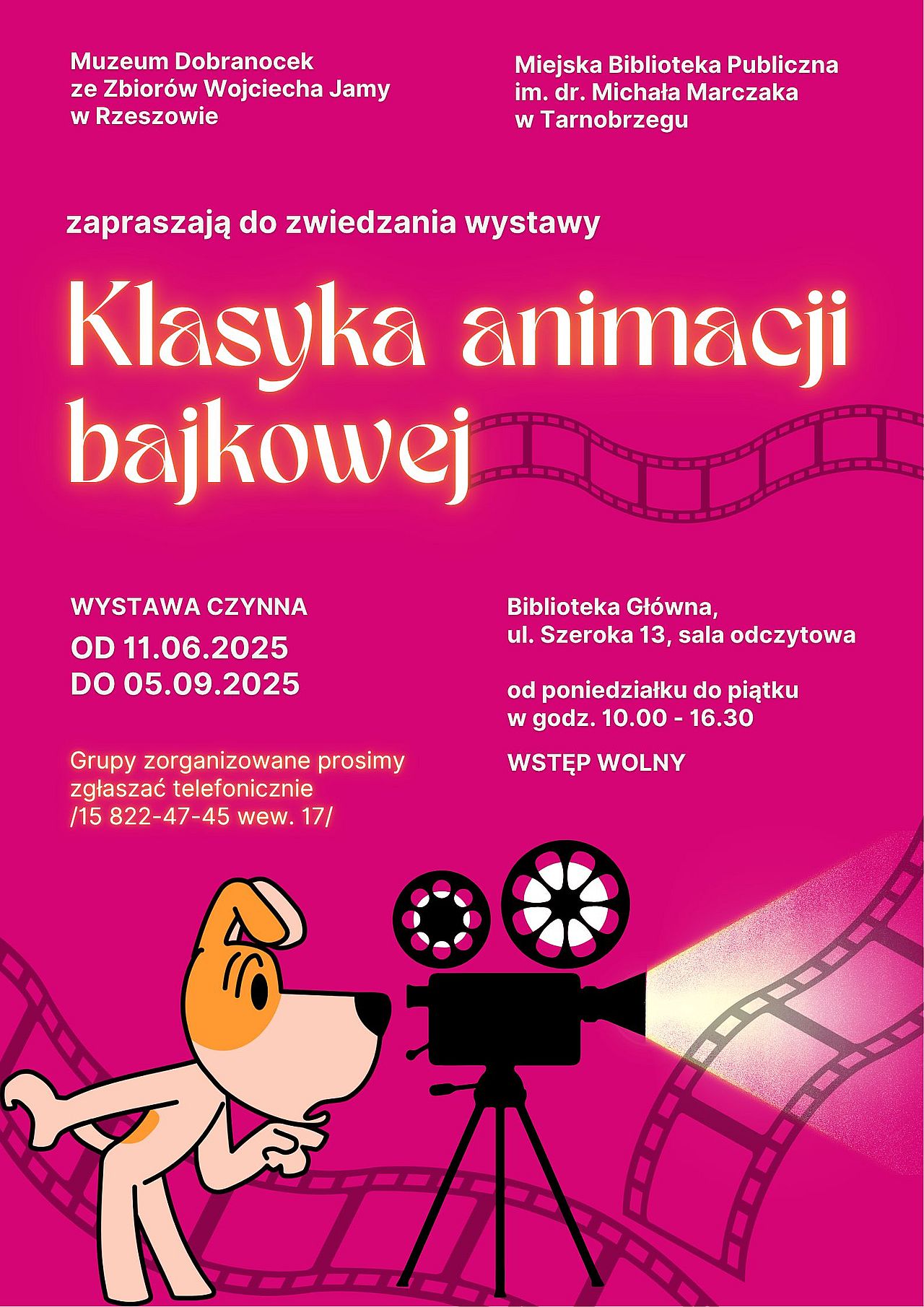 Do 5 września 2025 roku w Miejskiej Bibliotece Publicznej im. dr. Michała Marczaka w Tarnobrzegu prezentowana będzie wystawa "Klasyka animacji bajkowej” udostępniona przez Muzeum Dobranocek ze Zbiorów Wojciecha Jamy w Rzeszowie. "Klasyka animacji bajkowej” to ekspozycja dla wszystkich, bez względu na wiek – dorośli z pewnością przypomną sobie czasy dzieciństwa a młodsi otrzymają sporą porcję wiedzy o tajnikach realizacji filmów animowanych. Wystawa prezentuje scenariusze poszczególnych odcinków bajek, scenopisy obrazkowe, szkice, foldery jak również folie animacyjne. Ponadto można tu zobaczyć akcesoria wykorzystywane przy realizacji animacji, jak lalki filmowe i animacyjne, tablet do animacji, sklejarkę do taśmy filmowej oraz kamery. Archiwalne taśmy filmowe z zarejestrowanymi przygodami Reksia, Colargola, Bima i Boma, czy Wilka i Zająca. Całość ekspozycji dopełniają literatura oraz kolorowe plansze z wizerunkiem kultowych bohaterów, którzy pomimo tego, że mają już nawet po kilkadziesiąt lat, w ogóle się nie starzeją.