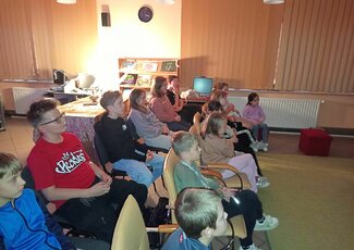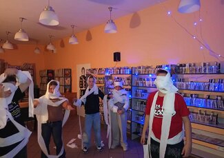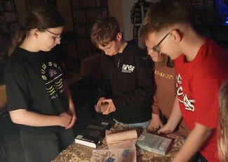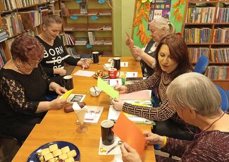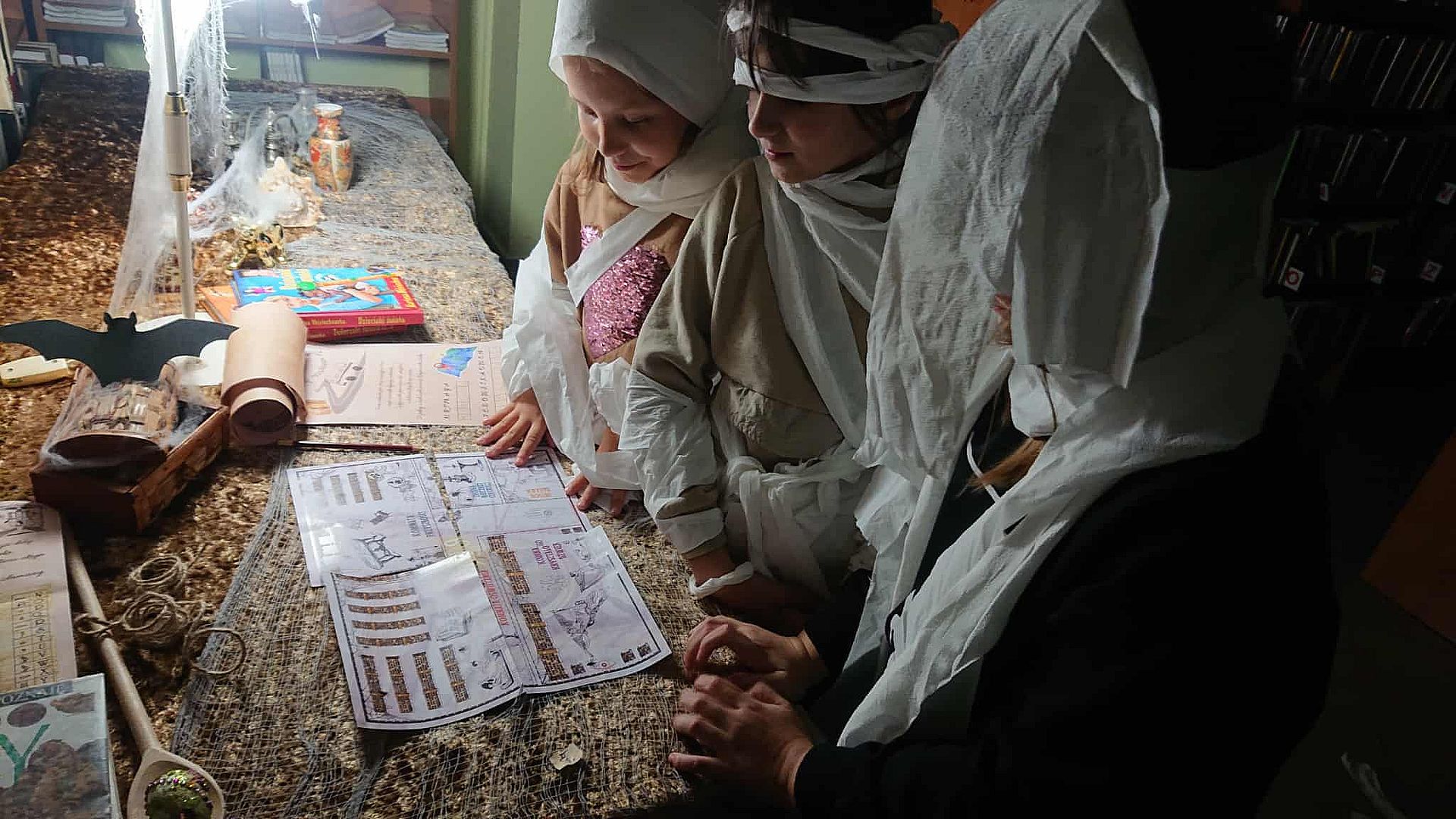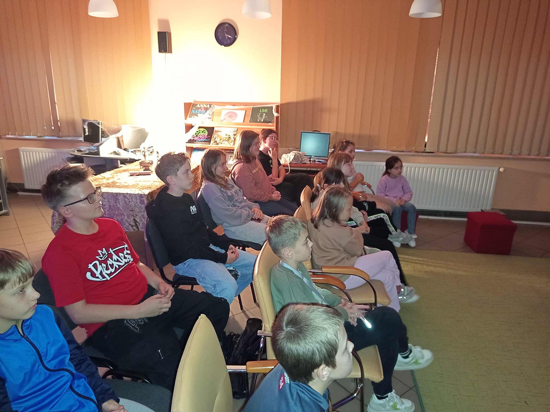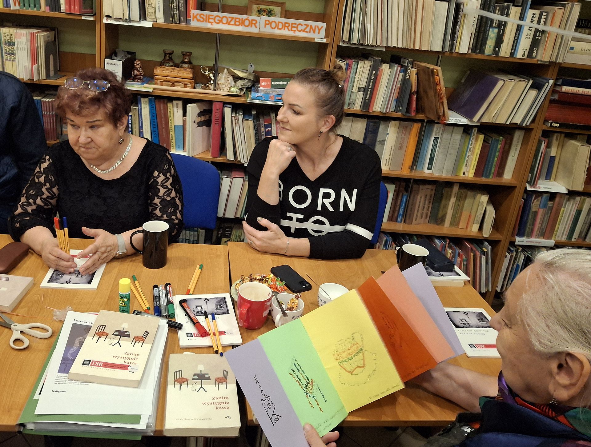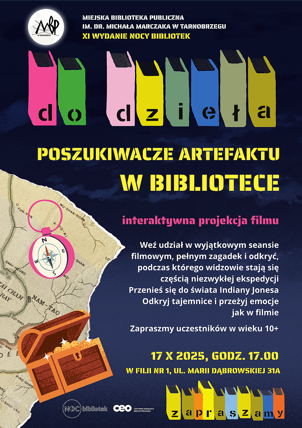 Z kolei, dzięki interaktywnej projekcji filmu Filia nr 1 na Serbinowie zamieniła się w prawdziwą świątynię przygód! Młodzi odkrywcy wyruszyli tropem tajemniczego artefaktu, rozwiązując zagadki szybciej niż Indiana Jones zdążyłby założyć kapelusz. Były hieroglify, tańczące mumie i mosty z kartonu, a śmiech rozbrzmiewał między półkami z książkami. Na szczęście nikt nie został przeklęty – wszyscy wyszli z biblioteki z uśmiechem i certyfikatem prawdziwego poszukiwacza skarbów! Także w Filii nr 1 podczas specjalnej edycji DKK w Noc Bibliotek klubowicze zamienili się w prawdziwych artystów! Wspólnie stworzyli niezwykłą książkę pełną kaligramów inspirowanych powieścią "Zanim wystygnie kawa" Toshikazu Kawaguchiego. Pomysły kipiały niczym świeżo zaparzona kawa, a śmiechu było więcej niż liter na stronach. Wieczór upłynął w ciepłej, twórczej atmosferze – nikt nie chciał, by "kawa" z naszej historii wystygła zbyt szybko! W obchody Nocy Bibliotek włączyli się również członkowie tarnobrzeskiego Koła Polskiego Związku Niewidomych – uczestniczyli w specjalnej projekcji filmu z audiodeksrypcją, która zakończyła się dyskusją i miłymi rozmowami.