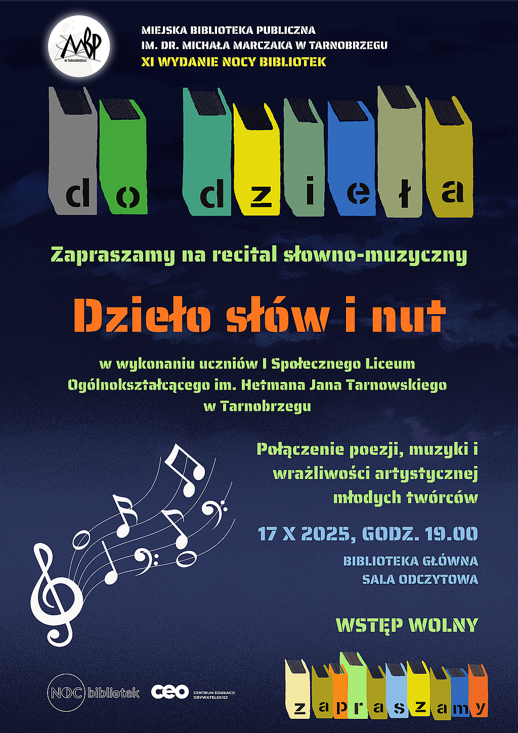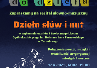 Wiele emocji i wzruszeń dostarczył recital słowno-muzyczny "Dzieło słów i nut" przygotowany prze młodzież I Społecznego Liceum Ogólnokształcącego im. Hetmana Jana Tarnowskiego pod opieką Renaty Dąbrowskiej. Występ był pięknym połączeniem poezji, muzyki i wrażliwości artystycznej młodych artystów. Wybrzmiały utwory Agnieszki Osieckiej, Wisławy Szymborskiej, Leoplda Staffa, Jonasza Kofty a także "Etuida 1" Krzysztofa Naklickiego odegrana na akordeonie oraz "Canon D-dur" Johana Pachelbela – na skrzypcach.