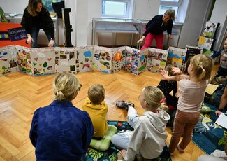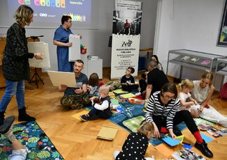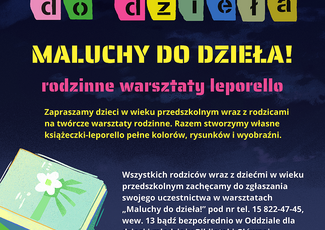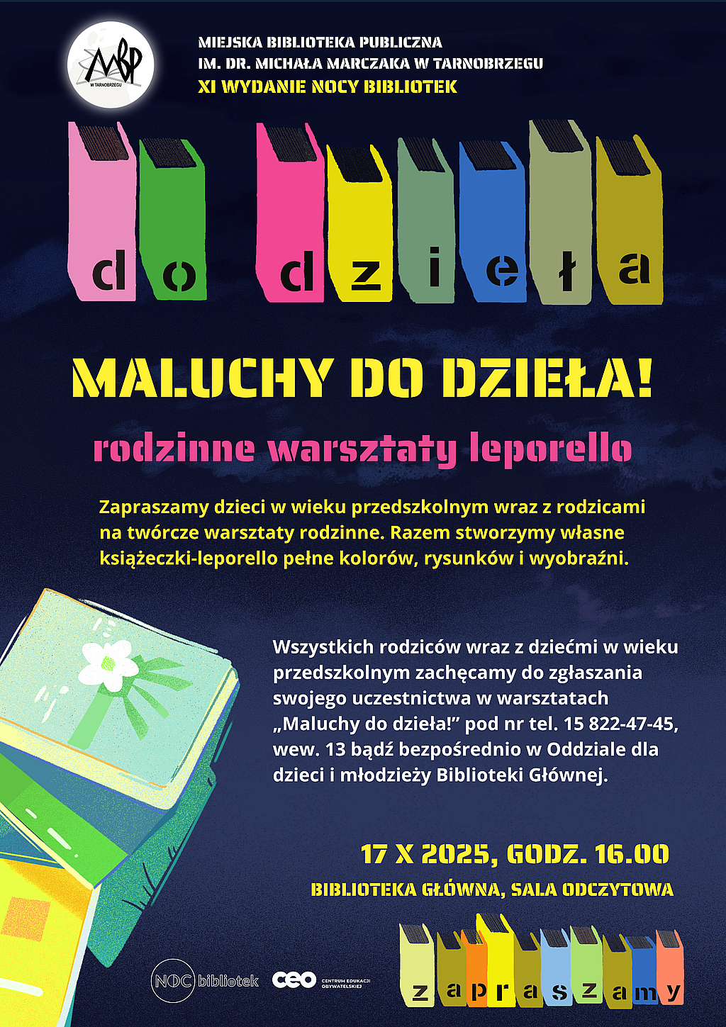 Warsztaty kreatywne dla rodzin "Maluchy do dzieła!" okazały się wyjątkowe. Królowały na nich wyobraźnia, kolor i dobra zabawa. Uczestnicy stworzyli swoje własne dzieła techniką leporello – rodziny przygotowały autorskie rozdziały i nadały im niepowtarzalne tytuły. Na koniec wszystkie prace połączyliśmy w jedną wspólną opowieść – pełną barw, emocji i rodzinnych opowieści.