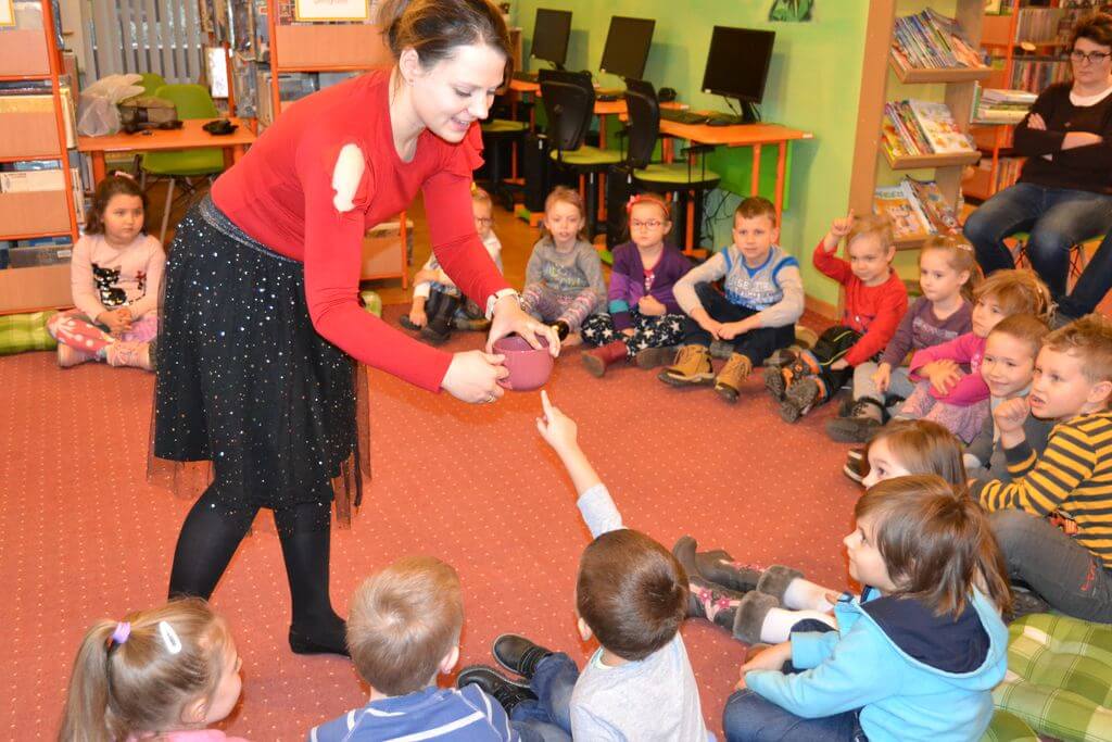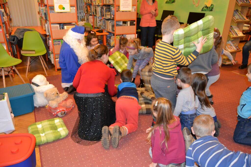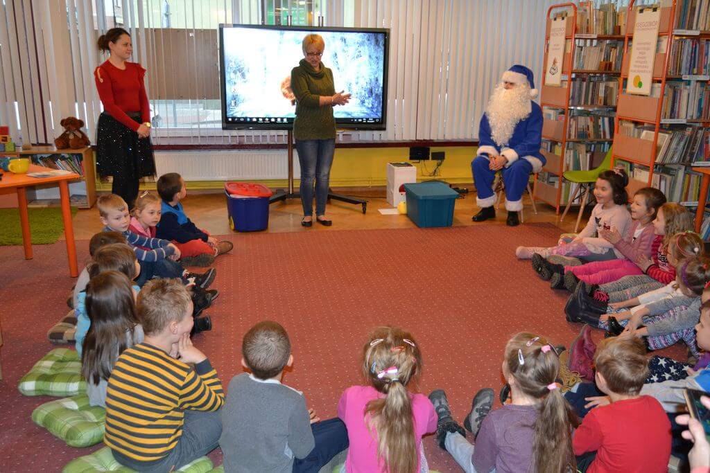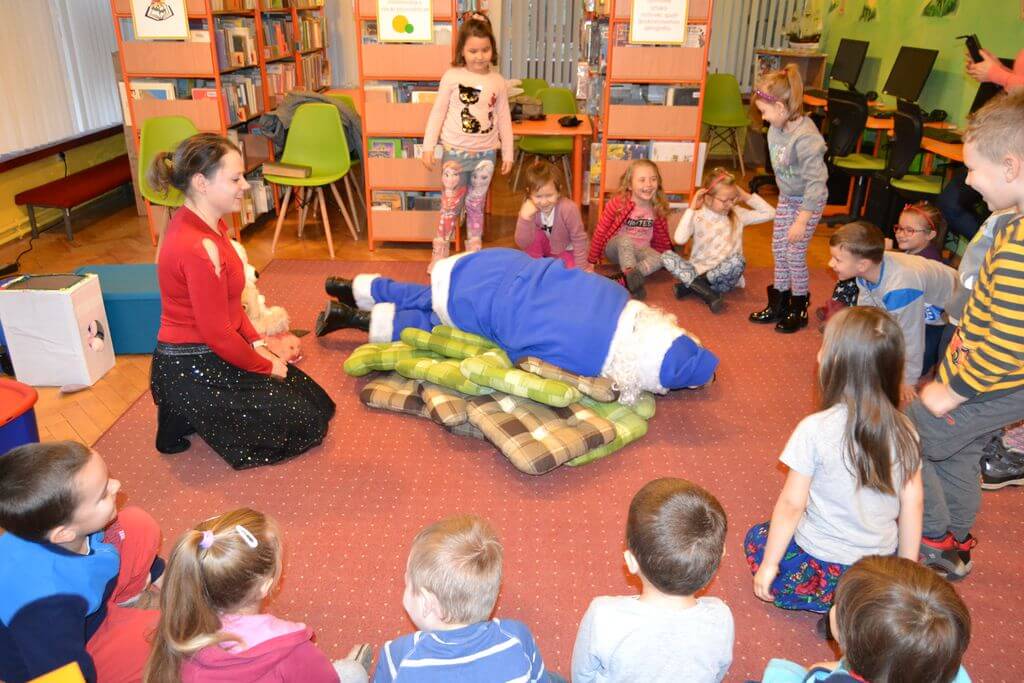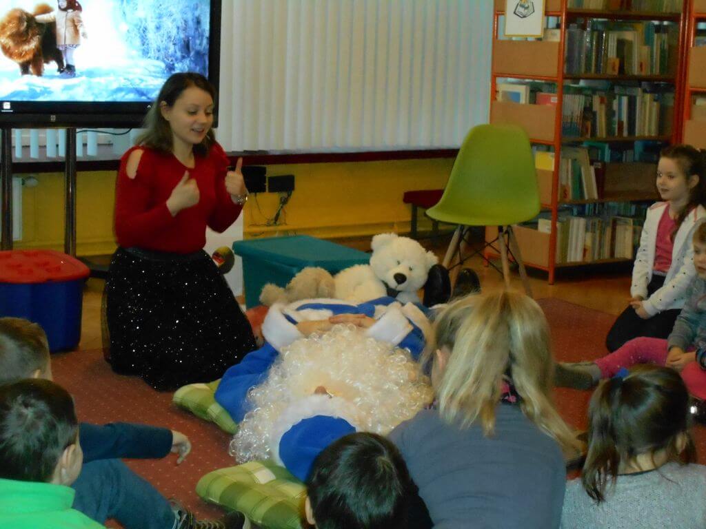 Na spotkanie z Niebieskim Mikołajem i pokazową lekcję języka angielskiego prowadzoną metodą Helen Doron, 19 i 20 grudnia, zaproszone zostały do Biblioteki Głównej 5 i 6- latki z Przedszkoli nr 2 i 5. Spotkanie okazało się wspaniałą przygodą. Przedszkolaki w zabawny i ciekawy sposób przyswoiły sobie łatwe słówka w języku angielskim, które następnie rozpoznały w czytanej przez Niebieskiego Mikołaja bajce o Trzech Misiach i Złotowłosej.