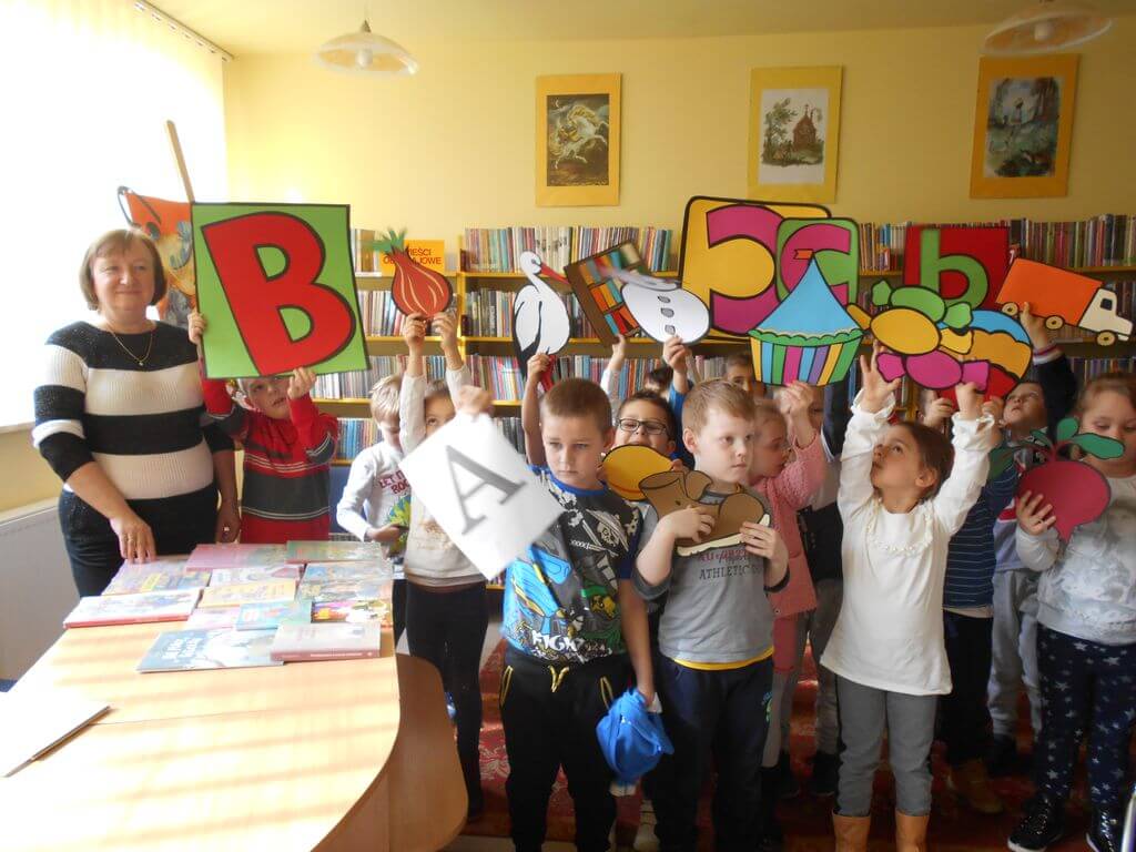 Z uwagą słuchały krótkich opowiadań o literkach G.Kasdepke pt. „Niesforny alfabet”, B. Strękowskiej-Zaremby „Leniwe literki” i „Kłopoty z alfabetem”, a następnie bardzo aktywnie uczestniczyły w literkowych zagadkach. Ogółem w ciągu roku odbyło się 27 spotkań w których uczestniczyło prawie 600 przedszkolaków. Jak zwykle dzieci miło spędziły czas w bibliotece, oglądały kolorowe bajki, bawiły się klockami i zabawkami w „kąciku malucha”. Na zakończenie przedszkolaki chętnie pozowały do pamiątkowych zdjęć.