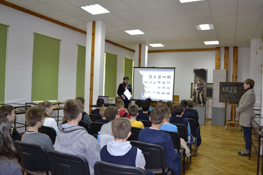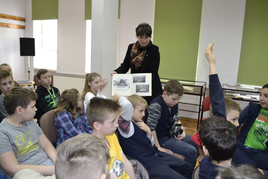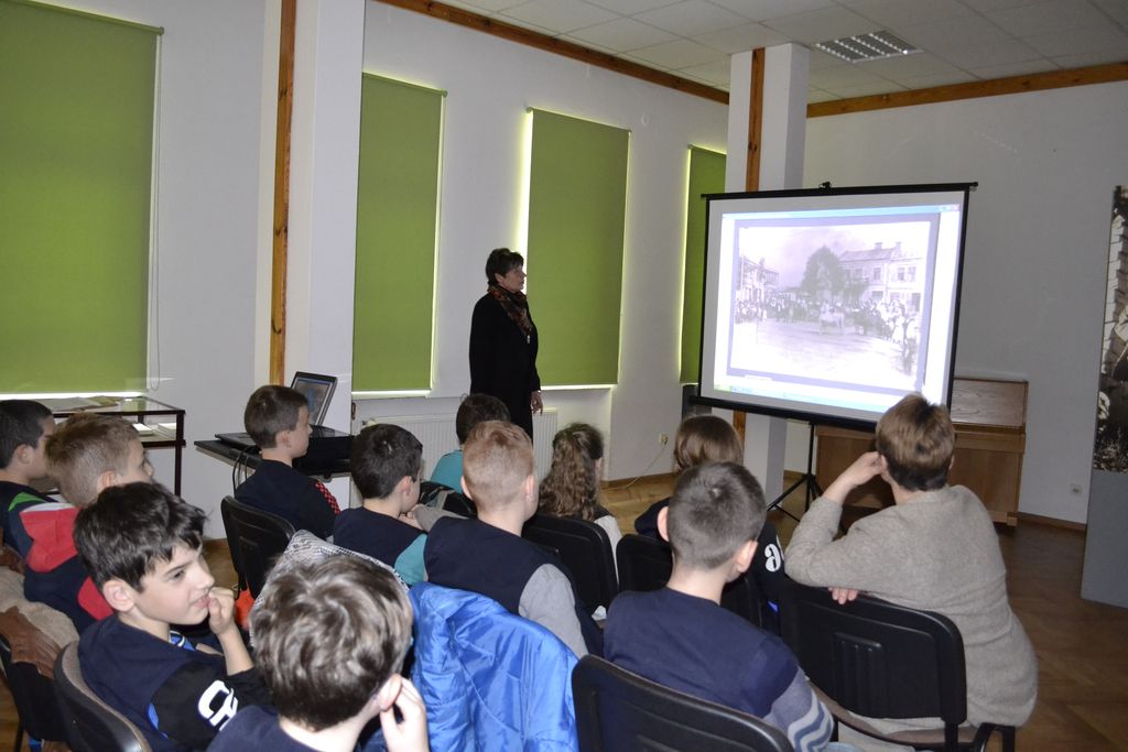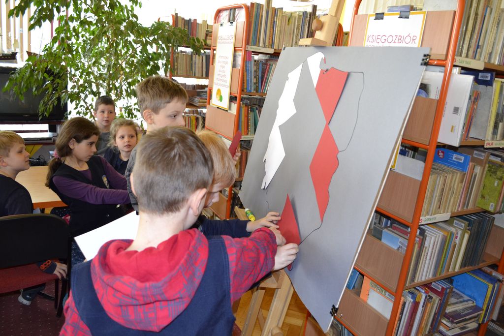 Wysłuchali również fragmentów poezji Konstantego Ildefonsa Gałczyńskiego, Zbigniewa Dmitroca oraz Czesława Janczarskiego, poświęconych jednemu z najważniejszych symboli narodowych. Na zakończenie lekcji uczniowie ułożyli z biało - czerwonych puzzli napis Polska oraz kontury Polski. Uczniowie z klas starszych zapoznali się z historią uchwalenia Konstytucji 3 Maja, która po utracie przez Polskę niepodległości w 1795 roku, przez 123 lata rozbiorów, przypominała o walce o niepodległość. Poznali również autorów tej pierwszej w Europie a drugiej na świecie nowoczesnej Ustawy. Szczególne zainteresowanie wśród uczestników lekcji wzbudziły archiwalne zdjęcia z uroczystości organizowanych w Tarnobrzegu w okresie międzywojennym, na których uwieczniono patriotyczne wiece, biegi okrężne przedstawienia z udziałem młodzieży gimnazjalnej oraz paradna musztra żołnierzy stacjonujących w Sandomierzu. Przy prezentacji wykorzystano fragmenty literatury regionalnej.