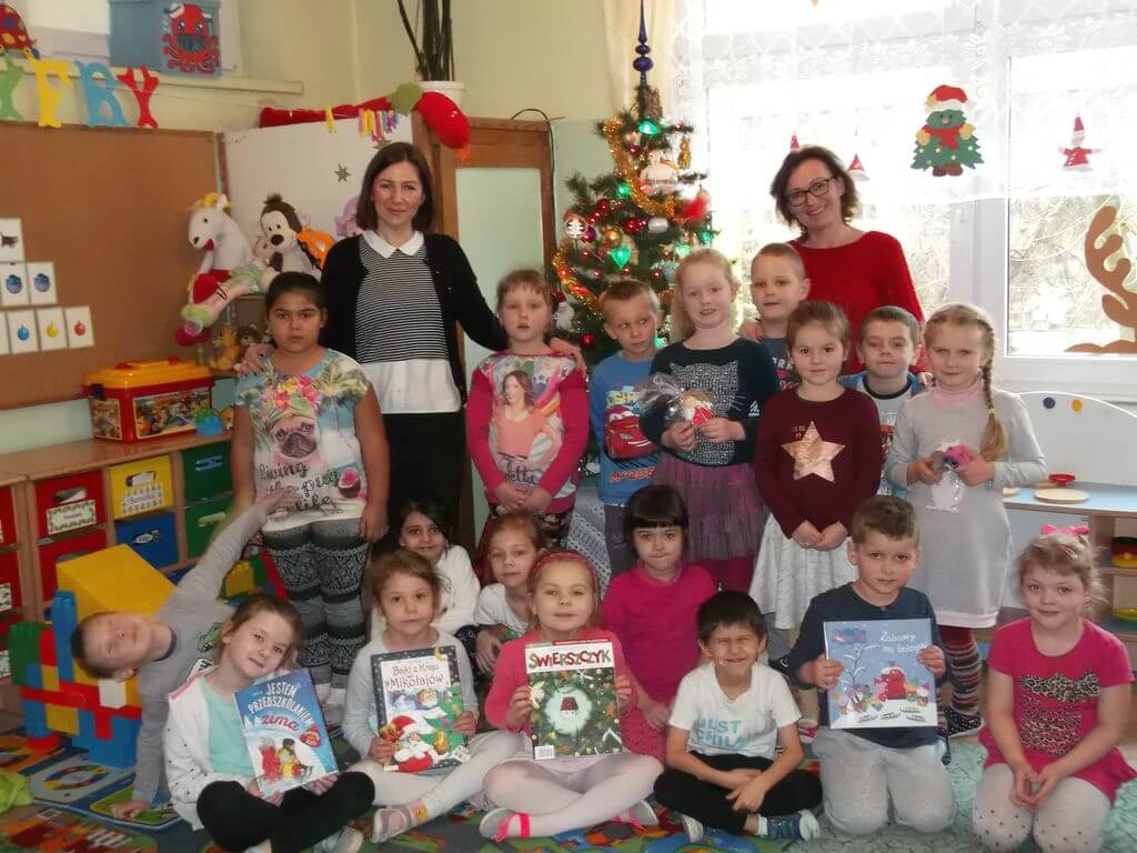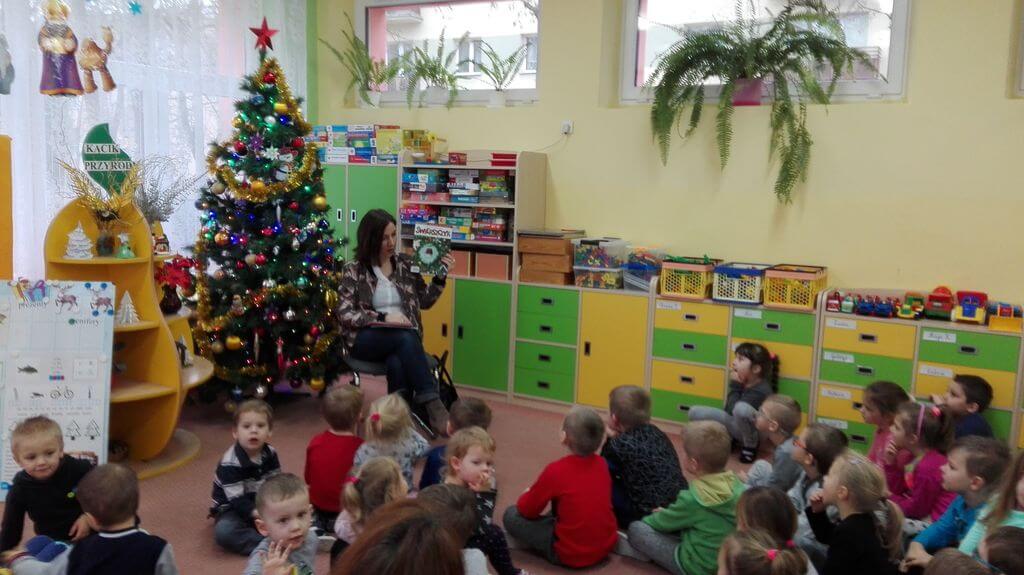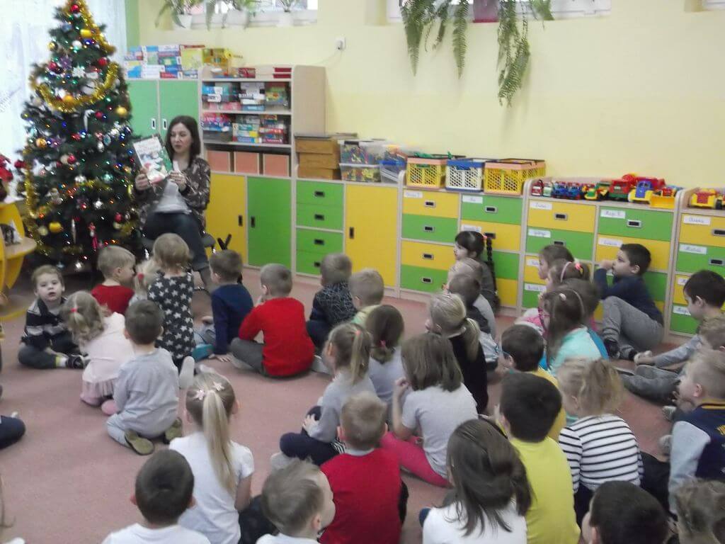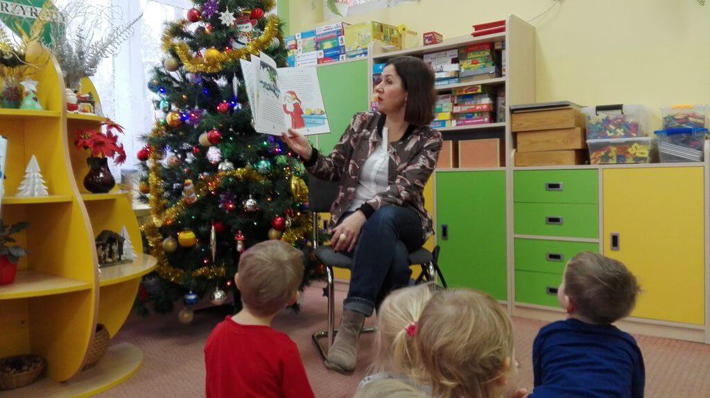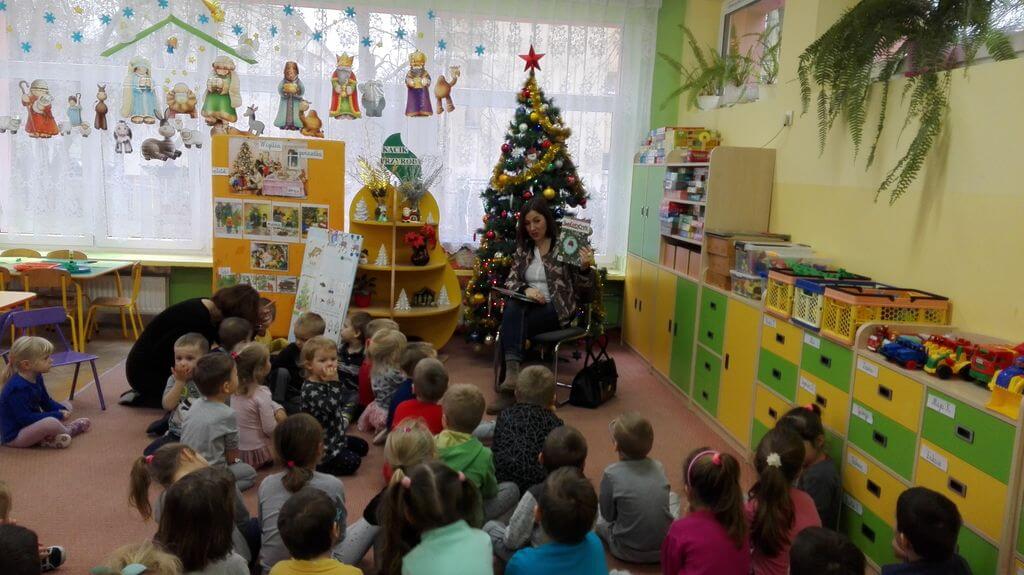 Czytała dzieciom piękne wigilijne opowieści, zimowe opowiadania i wiersze, m.in. Anny Sójki „Bajki z Krainy Mikołajów”, Agnieszki Antosiewicz „Jestem przedszkolakiem. Zima”, wiersz Alicji Krzanik „Świętowanie” z najnowszego Świerszczyka 24/2017. Świąteczne historie zachęciły dzieci do rozmowy o tradycji pielęgnowanej w ich domach, Mikołaju, który niedawno ich odwiedził i choince, najpopularniejszej bożonarodzeniowej dekoracji. W spotkaniach wzięło udział 115 dzieci.