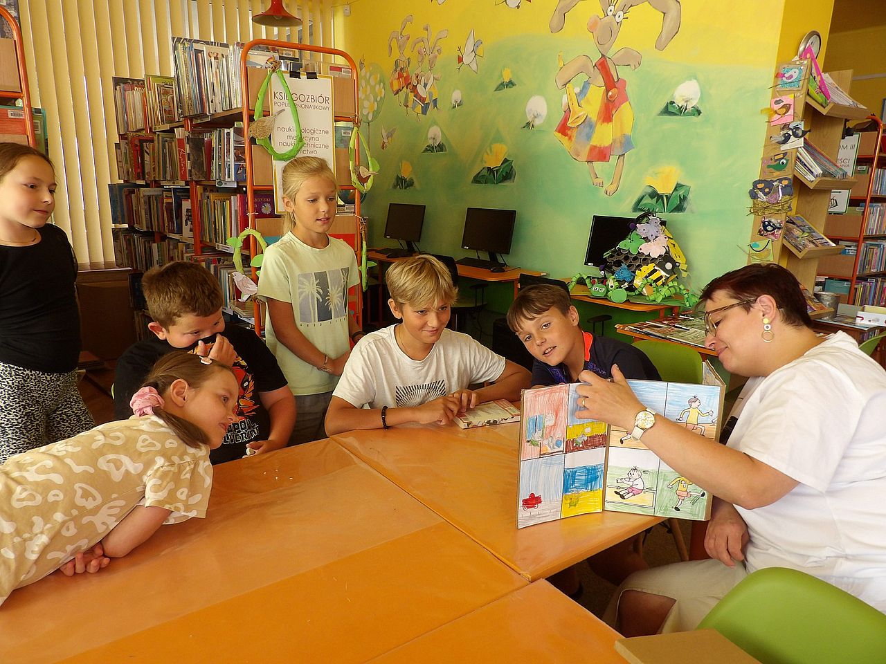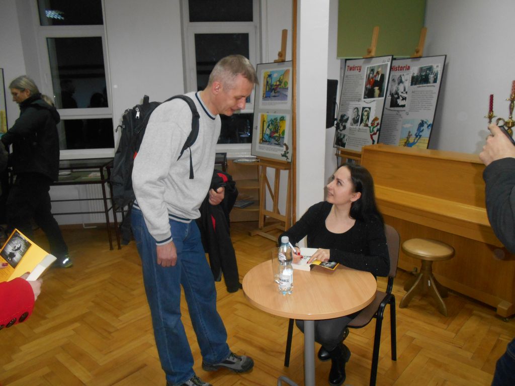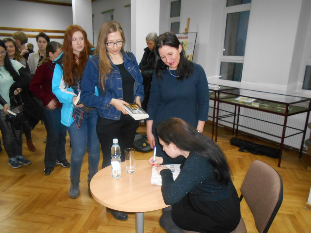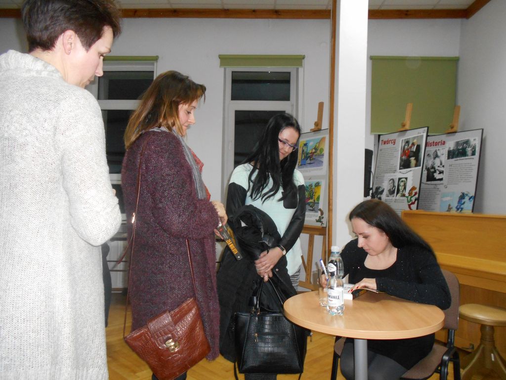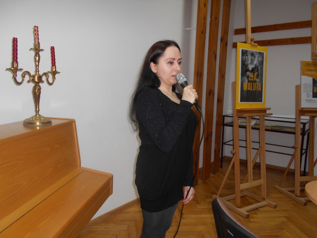 A kryminał? Bo to ulubiony mój gatunek literacki. Poza tym to nie tylko kryminalna fabuła ale również kreowanie postaci. Tworzenie portretów psychologicznych bohaterów. Pani Ewelina zapytana o warsztat twórczy przyznała szczerze, że stara się pisać co najmniej 3 godziny dziennie. Praca nad wydaną powieścią trwała 3 miesiące. Teraz pisze drugą część, z dziesięciu zaplanowanych, której akcja rozgrywa się, między innymi, w Bibliotece.