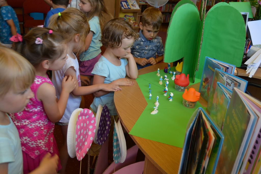 W bajkach napisanych i zilustrowanych przez belgijskiego ilustratora i autora komiksów Pierre Culliford, znanego jako Peyo bohaterami są Smerfy. Przygody niebieskich stworków znane są dzieciom na całym świecie. Pięknie ilustrowane bajki doczekały się również adaptacji filmowych. Corocznie, dzień 25 czerwca, obchodzony jest jako Światowy Dzień Smerfa. Z tej to okazji 20 czerwca w Oddziale dla dzieci MBP w Tarnobrzegu grupa 4 i 5-latków z Przedszkola nr 3 i nr 13 przeniosła się do wioski Smerfów.