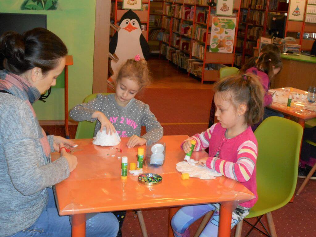 Podczas spotkań czytelniczych oraz warsztatów literacko-plastycznych, dzieci, inspirowane fragmentami literatury, wykonywały prace bawiąc się kolorem i formą. Zdecydowana większość przeprowadzonych zajęć odbywała się w blokach tematycznych. Oddział dla dzieci Biblioteki Głównej podczas tegorocznych ferii zabrał uczestników zajęć w odległe obszary polarne. Jako przewodnik posłużyły fragmenty książek między innymi Adama Bahdaja i A. i C. Centkiewiczów. Podczas realizacji programu wykorzystywano również monitor interaktywny, dzięki któremu zajęcia stały się bardziej atrakcyjne. Na zakończenie zimowych wędrówek dzieci stworzyły makietę, na której umieszczono wszystkie prace wykonane w trakcie zajęć. W Oddziale dla dzieci Filii nr 1 w ramach cyklu „Zima, książka i ja …” również połączono literaturę ze sztuką. Natomiast w Oddziale muzyczno - fonograficznym odbywały się zabawy przy muzyce, podczas których niekwestionowanym przebojem była taneczna mata. W Filii nr 2 powstały „pejzaże mrozem malowane” a w Filii nr 8 zakładki do książki. Uczestnicy spotkań w Filii nr 3 zostali przeniesieni „w krainę zimowych opowieści”. Powstały tu zimowe ogrody, zaczarowane kule i figurki zimowych przyjaciół. Spotkania w Filii nr 4 zdominowały zabawy integracyjne. Tematem przewodnim zajęć przeprowadzonych w Filii nr 5 były Anioły inspirowane książkami, m.in. E. Masłowskiej, natomiast w Filii nr 6 m.in. rozwiązywano zagadki z detektywem Pozytywką.