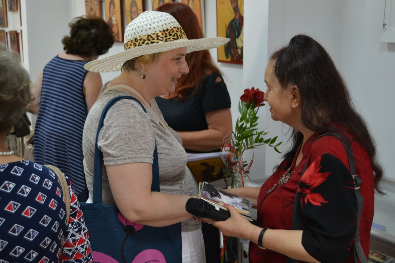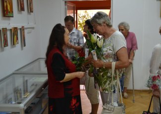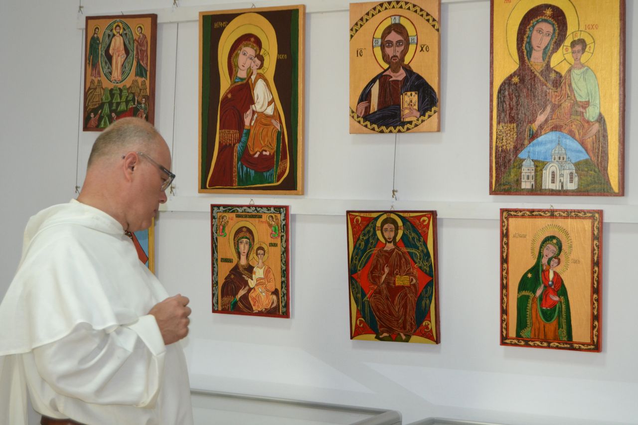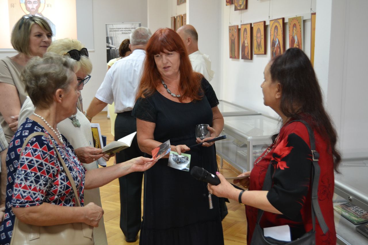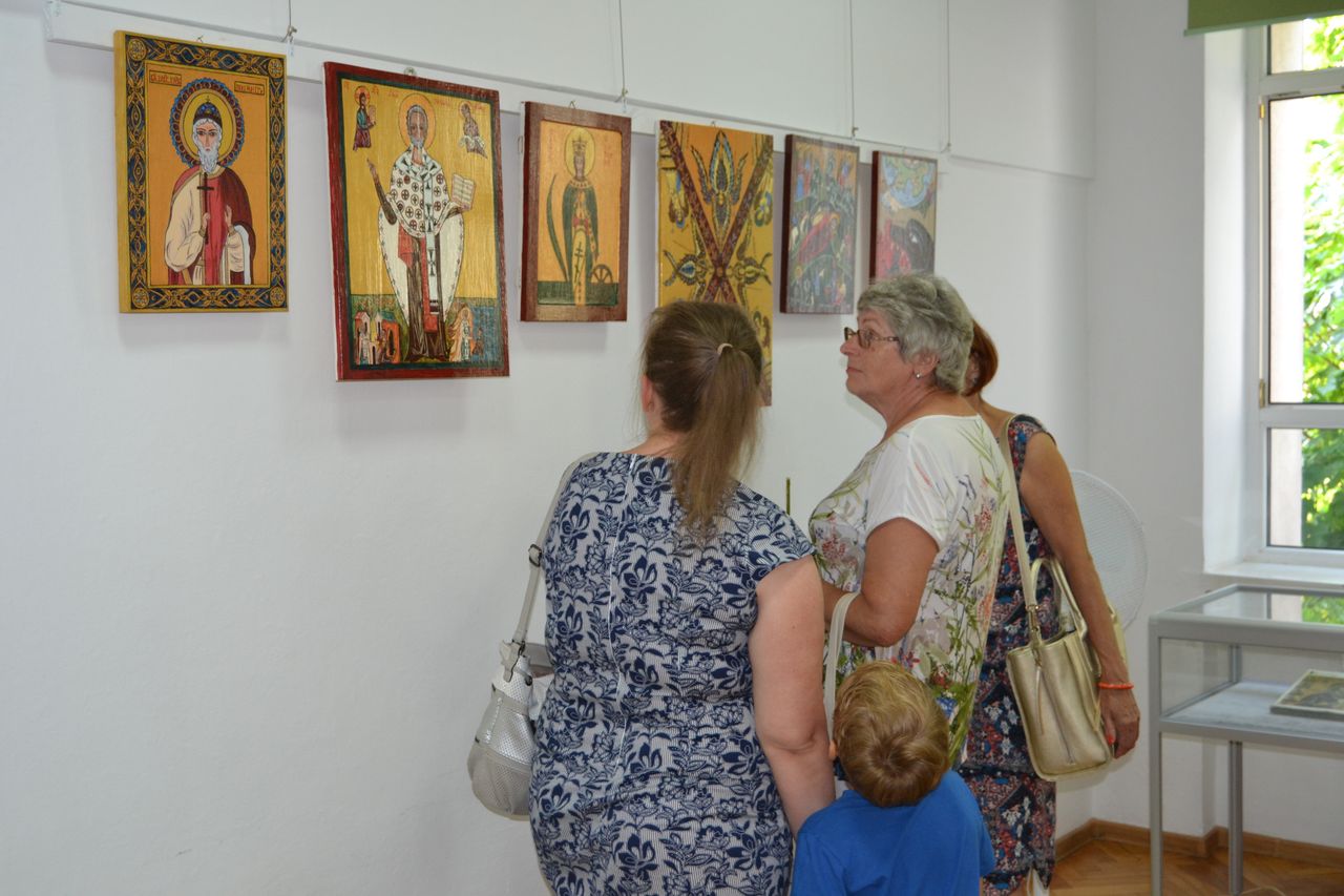 Swoje ikony „pisze” od przeszło dziesięciu lat. Zawsze w oparciu o oryginały, ze szczególna dbałością o zgodność z tradycyjnymi kanonami i dociekliwością w odkrywaniu symboliki przesłań teologicznych (biblijnych bądź hagiograficznych). W swoich pracach nie stroni wszakże od subtelnej, osobistej ich interpretacji. Pracę nad wybraną ikoną poprzedza wnikliwymi studiami literatury przedmiotu, tematycznych albumów, stosownych fragmentów Biblii czy legend o świętych. Wśród prac, które autorka prezentuje na wystawie w Miejskiej Bibliotece Publicznej im. dr. Michała Marczaka w Tarnobrzegu oprócz wyobrażeń Świętych, scen rodzajowych opisujących życie i śmierć Jezusa Chrystusa, najczęściej pojawiającym się motywem jest wizerunek Matki Bożej Czułej i Matki Bożej Przewodniczki. Całość ekspozycji uzupełnia literatura dotycząca tematu. Wernisaż wystawy „Ikony Marii Topolewicz”, który odbył się 20 sierpnia 2018 r. zgromadził wielu gości, wśród których byli przyjaciele i znajomi artystki jak i tych, których ikony urzekają swoim pięknem, tajemnicą, blaskiem złota i ciepłem koloru. O samej autorce, jej zainteresowaniach i pasji tworzenia opowiedziała dr Anna Niewolak. Natomiast sama autorka zabrała publiczność w świat swojej twórczości szczegółowo omawiając większość prezentowanych prac, przytaczając historie ich powstania oraz legendy z nimi związane.