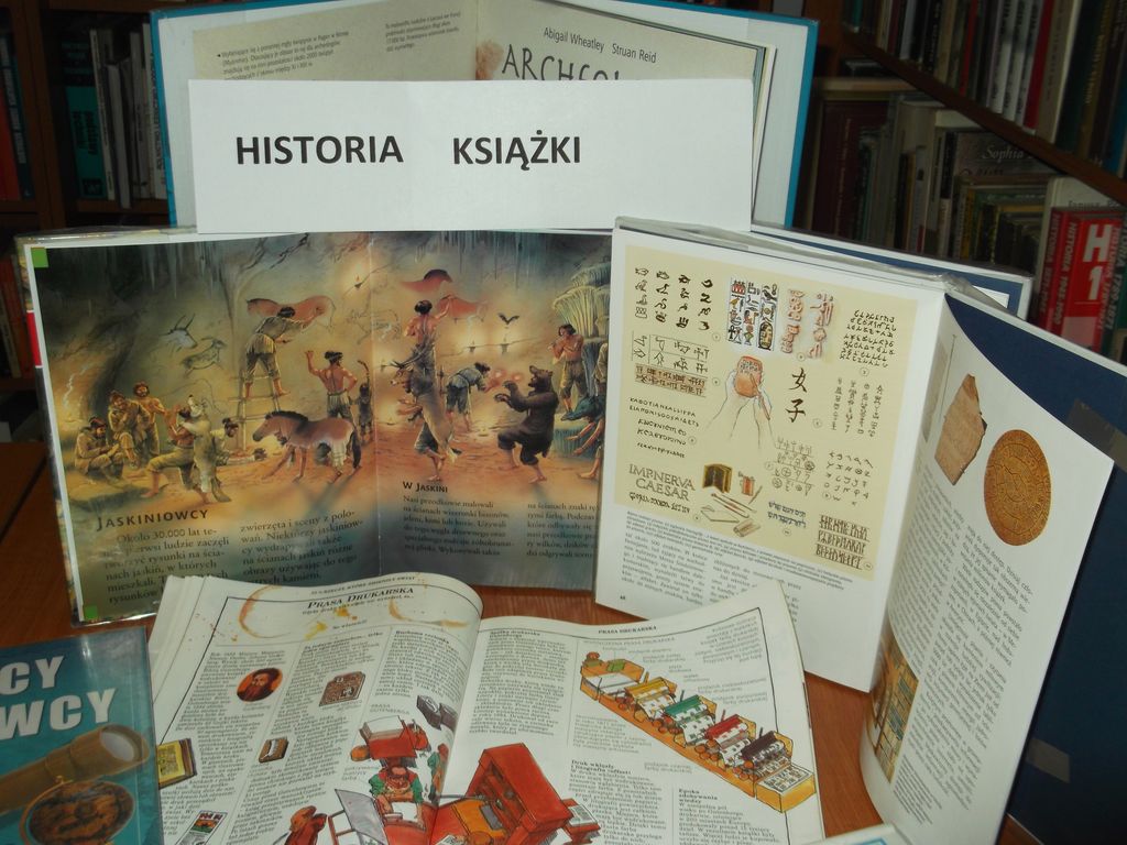 "Historia książki" - to tytuł lekcji bibliotecznej, w której 13.12.2018 roku uczestniczyli uczniowie kl. IV. Młodzi czytelnicy wybrali się w podróż wehikułem czasu i rozpoczęli ją 40 tysięcy lat p. n. e., dowiadując się, że pierwszą kroniką dziejów ludzkości były malowidła jaskiniowe. Następnym przystankiem była Mezopotamia, Grecja i Rzym, gdzie książka przybrała formę tabliczek z gliny i wosku.