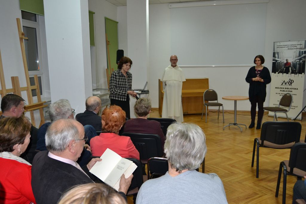 Z czytelnikami rozmawiała na temat swojej twórczości, ze szczególnym uwzględnieniem sagi o rodzie Petrycych, gdzie opisała prawdziwe historie, które wydarzyły się w Monachium oraz w rodzinnym Krakowie. Tak naprawdę do napisania powieści zainspirowało mnie przypadkowe spotkanie z mężczyzną, który tak jak i ja jechał pociągiem do Niemiec. Mężczyzna ten przez całą podróż opowiadał mi o swoich losach. Był synem Niemca, który po wojnie wyemigrował z Polski, nie wiedząc, że jego ukochana spodziewa się dziecka. Kiedy po wielu, wielu latach przyjechał do Polski z sentymentalną wizytą, dawni sąsiedzi powiedzieli mu, że ma dorosłego syna. Odszukał go. Mój towarzysz podróży był właśnie tym synem. Po raz pierwszy jechał do Niemiec, żeby poznać swoją nową rodzinę - powiedziała autorka sagi. By ich losy osadzić w jak najwierniej oddanych realiach Krakowa lat 40. 50. czy 90. w których toczy się akcja książek, pani Mirosława przewertowała setki stron pamiętników i opracowań historycznych. Spotkanie poprowadził o. Maciej Złonkiewicz OP, były przeor klasztoru ojców dominikanów w Tarnobrzegu a od lat przeor klasztoru w Monachium.
