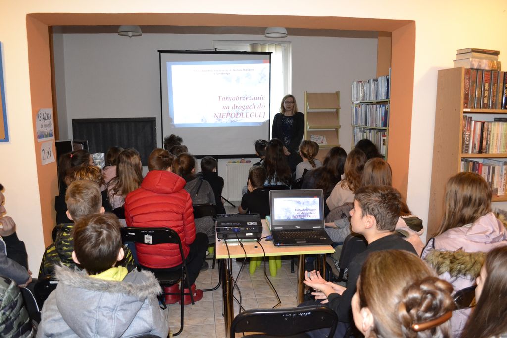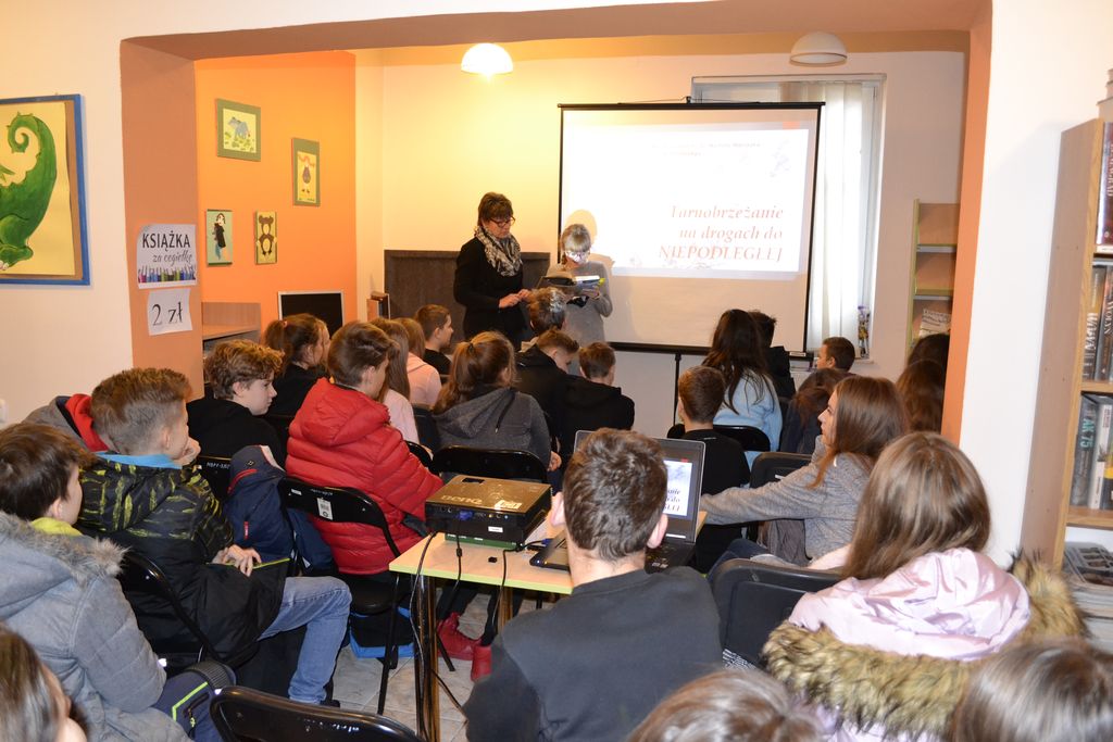 W ramach obchodów 100-lecia odzyskania przez Polskę niepodległości w Filii nr 5, 13 i 14 grudnia przeprowadzono lekcje biblioteczne „Nim nadeszła upragniona wolność”. Uczestniczyli w nich uczniowie ze Szkoły Podstawowej nr 8 w Tarnobrzegu. Katarzyna Opioła, omawiając poszczególne zrywy narodowościowe, począwszy od Powstania Kościuszkowskiego kończąc na Legionach Piłsudskiego, zwracała szczególną uwagę na udział w nich Tarnobrzeżan.