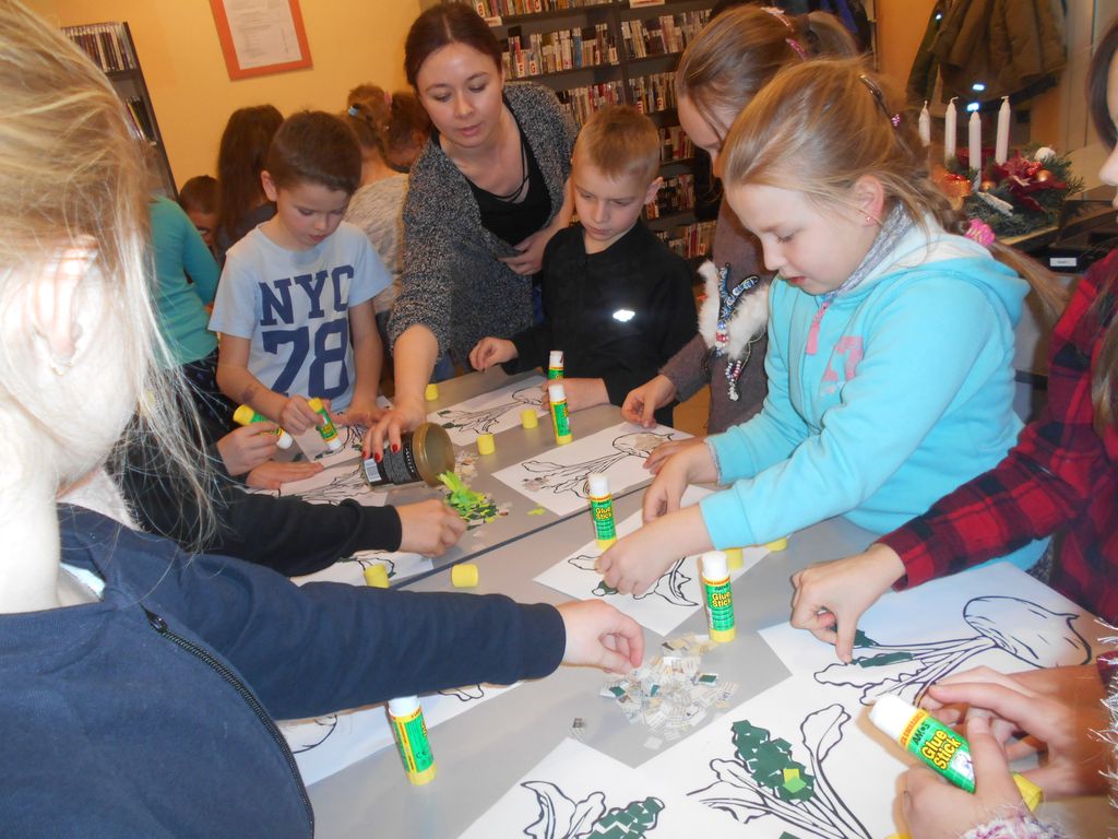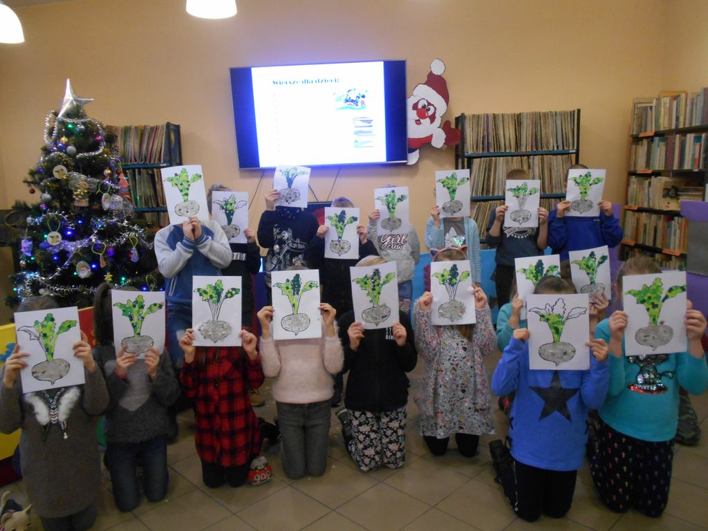 Z tej okazji w Filii nr 1 przeprowadzono lekcję biblioteczną dla uczniów klasy drugiej szkoły podstawowej. Spotkanie rozpoczęła prezentacja multimedialna o życiu i twórczości Juliana Tuwima, z której dzieci dowiedziały się wiele ciekawostek o autorze „Słonia Trąbalskiego”, np. takich że jako dziecko o mało nie wysadził domu, hodował węże, zajmował się magią i „przezimował” szóstą klasę. Tuwim miał ukochanego psa Dżońcia, o którym mówił, że to najmądrzejszy pies w Warszawie i któremu poświęcił osobny wiersz. Następnie uczniowie oglądali animacje wierszy poety w wykonaniu aktorów scen polskich. Wysłuchane wiersze: „Pstryczek”, „Lokomotywa”, „Rzepka”, „Abecadło”, „Okulary”, dały początek zabawie – rozsypanka literowa. Na koniec spotkania dzieci wykonały wyklejankę do wiersza „Rzepka”. Lekcja upłynęła w miłej i twórczej atmosferze.