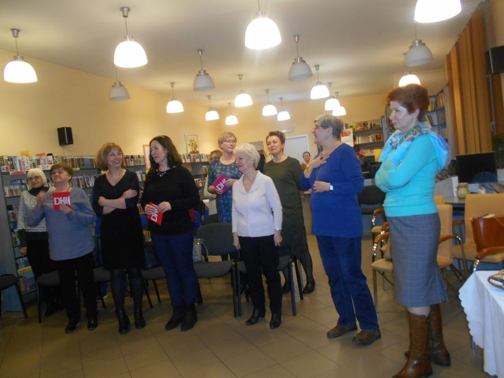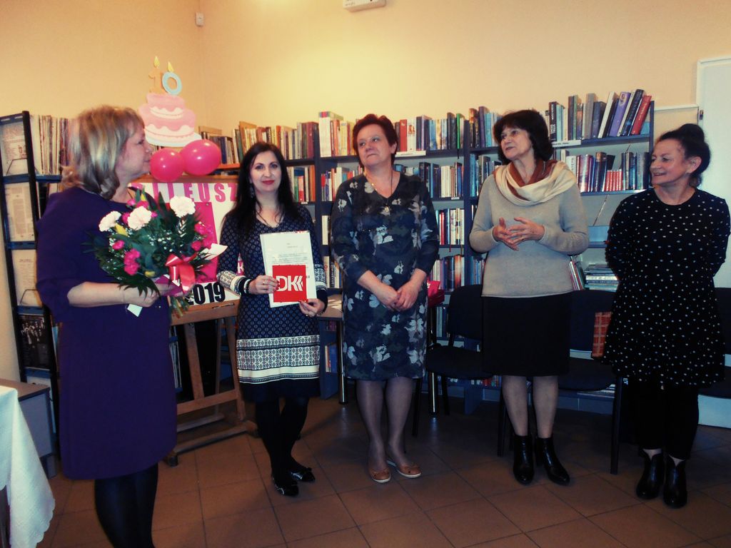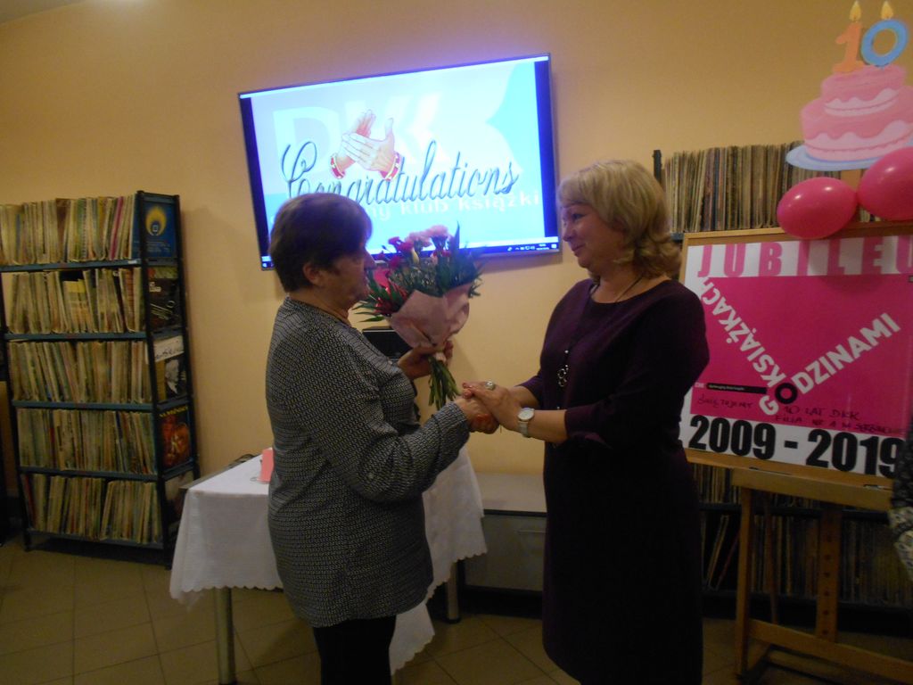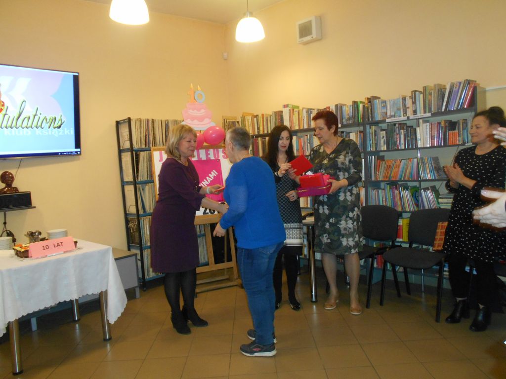 Podczas spotkania jubileuszowego przedstawiono historię powstania klubu, wzbogaconą o prezentację multimedialną, przypomniano wiele ciekawych, wzruszających i zabawnych historii. Uczestnicząca w spotkaniu pani Małgorzata Augustyn - koordynator wojewódzki DKK z WiMBP w Rzeszowie złożyła Klubowiczkom gratulacje. Były też kwiaty i podziękowania. Pani Stanisława Mazur - dyrektor Biblioteki gratulowała wszystkim tego co było i życzyła dalszych owocnych spotkań i dyskusji. Wszystkie Klubowiczki otrzymały pamiątkowe niespodzianki.