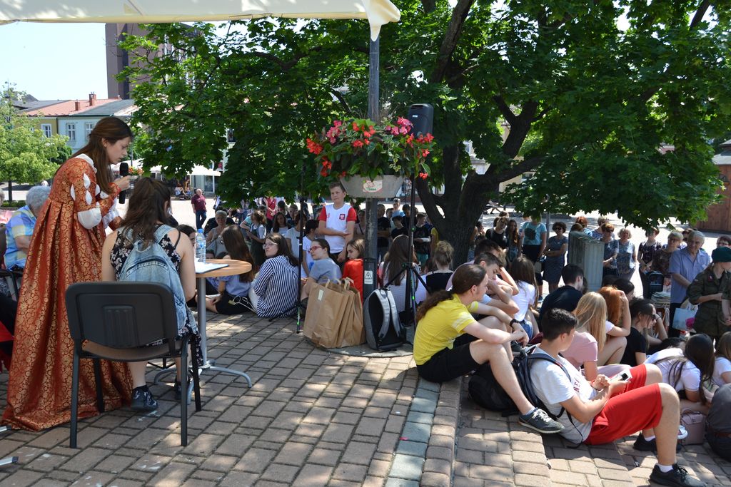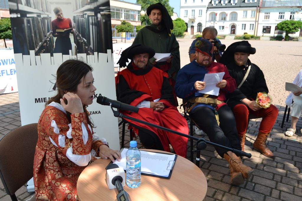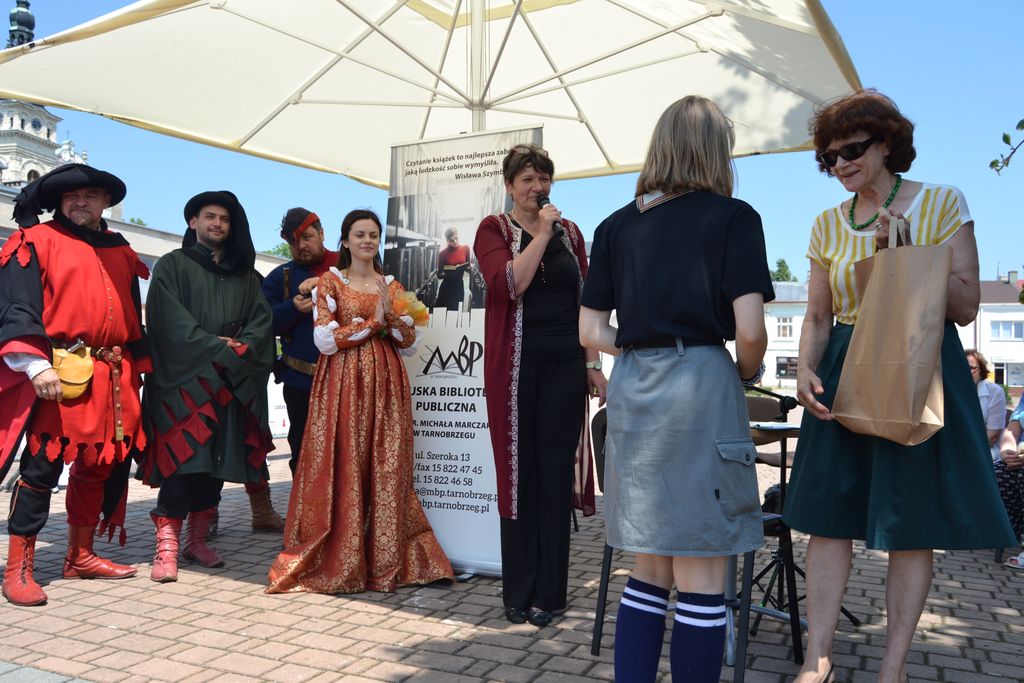 Filmowej kasztelance towarzyszyli Szymon Kasak, Miłosz Kasak, Sławomir Partyka z Tarnobrzeskiej Chorągwi Rycerskiej Leliwa, a także Robert Lubera, który na planie serialu opiekuje się statystami. Aktorka, specjalnie na tę okazję wybrała wiersze najwybitniejszych polskich poetów, między innymi Bolesława Leśmiana, Jana Brzechwy, Juliusza Słowackiego , Czesława Miłosza i Juliana Tuwima. Następnie po wystrzale z broni czarnoprochowej rozpoczęto poetycki flash mob. Na tarnobrzeskim Rynku zaopatrzeni w tomiki poezji, licznie zgromadzeni uczniowie z tarnobrzeskich szkół, uczestnicy Domu Dziennego Pobytu, harcerze rozpoczęli głośne czytanie. Przez prawie dwie minuty mieszały się strofy Wandy Chotomskiej, Czesława Janczarskiego, Wisławy Szymborskiej, Juliana Tuwima, Lecha Konopińskiego i innych. Każdy czytający otrzymał pamiątkowy buton.