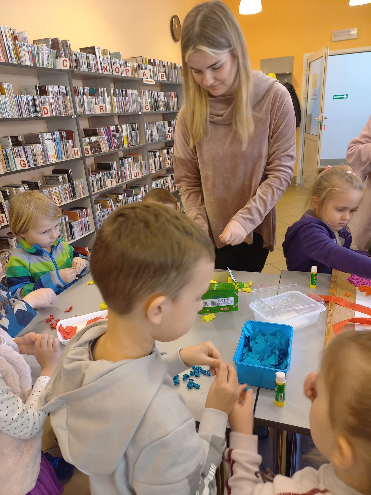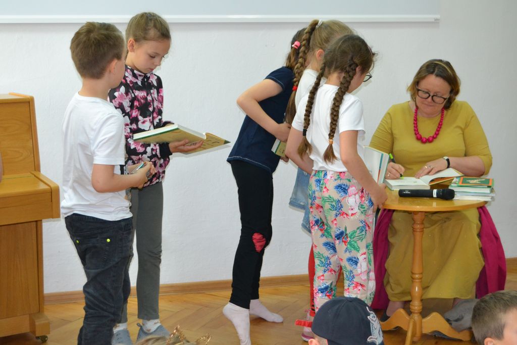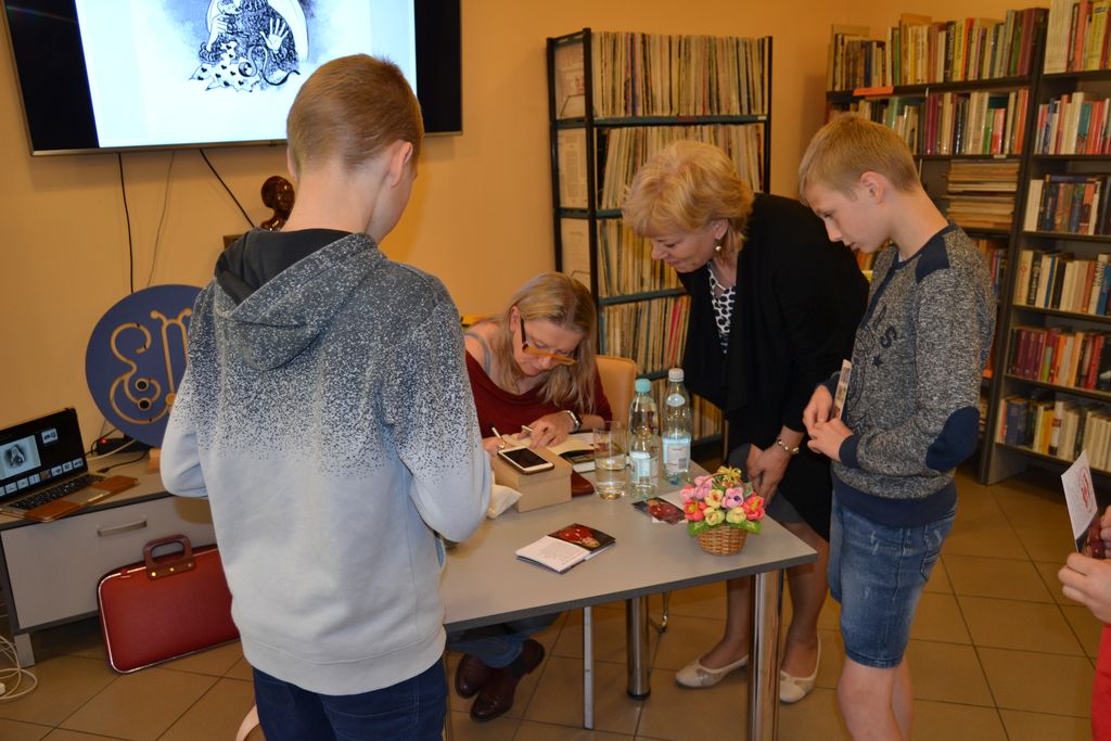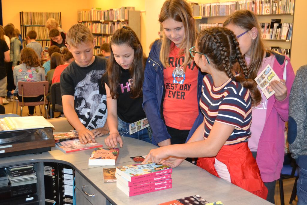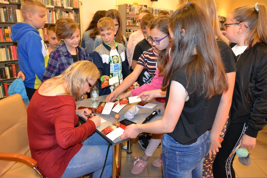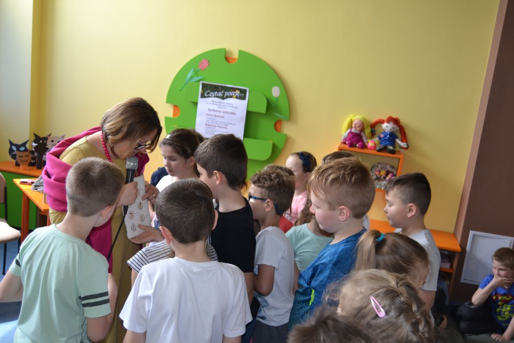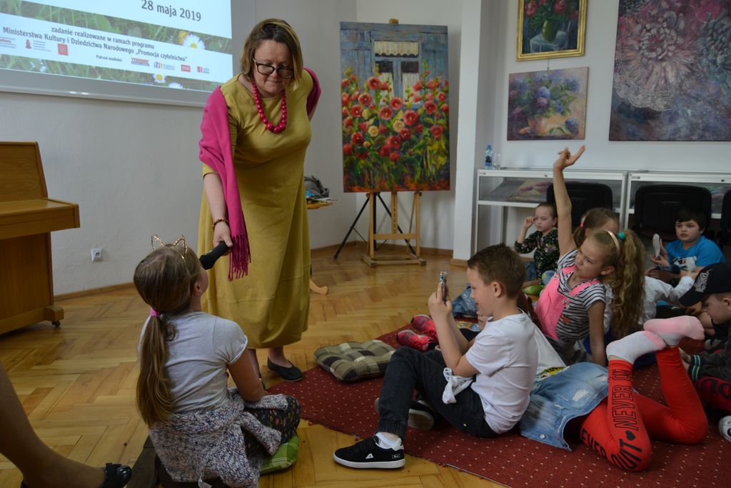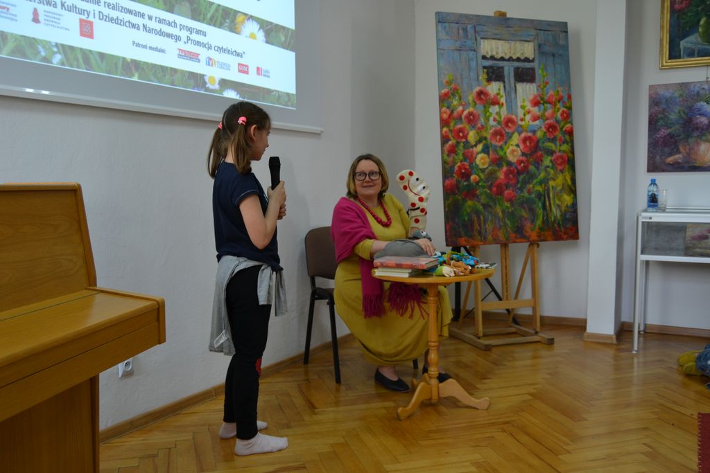 Na dłuższą chwilę biblioteka zamieniła się we wspaniałą, kreatywną pracownię, w której z przygotowanych przez bibliotekarzy materiałów plastycznych: koralików, kolorowych drucików, piankowych naklejek, powstały samodzielnie wykonane prace. Natomiast 31 maja w Oddziale dla dzieci i młodzieży oraz w Filii nr 1 z młodzieżą spotkała się blogerka, dziennikarka prasowa, felietonistka i pisarka Małgorzata Karolina Piekarska. Bohaterowie z powieści pani Małgorzaty to zwyczajni ludzie, ze swoimi odpowiednimi do wieku dylematami. Ich historie tworzyło samo życie. Niejednokrotnie inspiracją literacką były losy dalszej lub bliższej rodziny oraz znajomych autorki. Tak jest w przypadku Bazylego i Małgorzaty z „ Licencji na dorosłość”. Autorka wplata nie tyko zdarzenia z życia swoich przodków, przytacza również zapomniane strofy Franciszki Arnsztajnowej, wieloletniej przyjaciółki Józefa Czechowicza ulubionego poety swojej babci. W obu przypadkach uczestnicy spotkań zasypali gości gradem pytań. Pytano m.in., o warsztat pisarski, inspiracje, ulubione tytuły książek innych pisarzy, znajomość języków obcych.