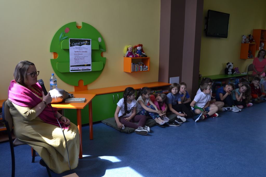 W dniach 28 maja w Oddziale dla dzieci i młodzieży BG oraz Filii nr 7 z młodymi czytelnikami spotkała się Justyna Bednarek – dziennikarka i znana autorka. Opowiedziała dzieciom skąd bierze swoje śmiesznie pomysły i inspiracje do napisania książek, w tym „Niesamowitych przygód dziesięciu skarpetek (czterech prawych i sześciu lewych)”. Spotkanie połączone zostało z warsztatami, w trakcie których dzieci tworzyły, wymyślonych przez siebie, skarpetkowych bohaterów.