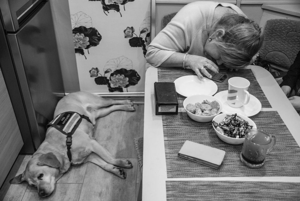 Bohaterką jej reportażu została Teresa Biało. Pani Teresa na skutek dziecięcego porażenia mózgowego jest osobą niepełnosprawną, poruszającą się na wózku. Kilkanaście lat temu zaczęła także tracić wzrok. Zdjęcia ukazują panią Teresę w jej codziennym życiu. W zmaganiach z problemami codzienności pomaga jej pies przewodnik Nefi. On również jest bohaterem reportażu. Sesją zdjęciową, trwającą dwa dni autorka, jak sama mówi, chciała pokazać iż pani Teresa „pomimo braku udogodnień jest osobą promieniująca entuzjazmem i nie zważa na wszelkie nieudolności otaczającego ją świata”.