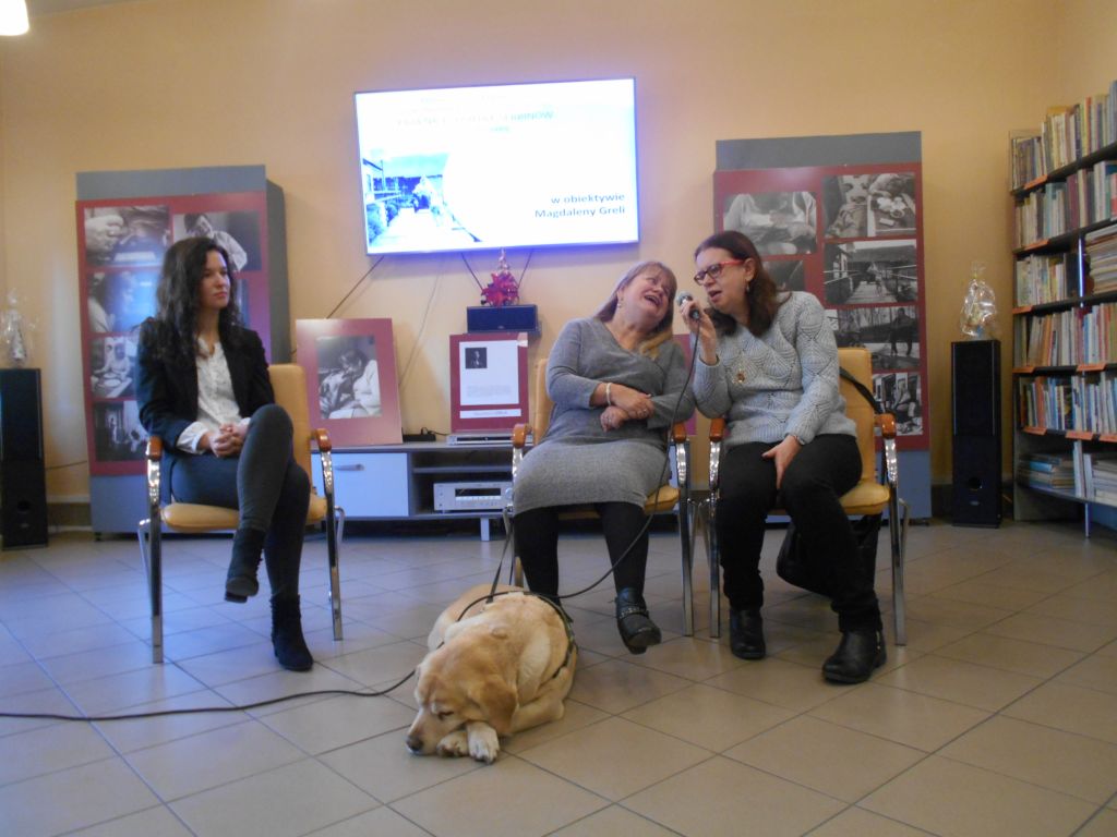 W Filii nr 1 MBP w Tarnobrzegu, 12 grudnia 2019 r., odbył się wernisaż wystawy „Dzień z życia niewidomego” prezentującej fotografie wykonane w czasie realizacji projektu . Podczas wernisażu pani Magdalena Grela opowiedziała o spotkaniu z panią Teresą, kulisach pracy nad projektem, którego główną ideą było ukazanie i uwiecznienie dnia codziennego osoby niewidomej. Miłym akcentem wernisażu był występ artystyczny pani Teresy Biało i pani Magdaleny Zach, które zaśpiewały kilka piosenek z repertuaru Ewy Demarczyk, Anny Jantar, Czesława Niemena, Marka Grechuty i Maryli Rodowicz. Obie Panie uczestniczą w Warsztatach muzycznych działających przy Podkarpackim Kole Polskiego Związku Niewidomych w Rzeszowie.