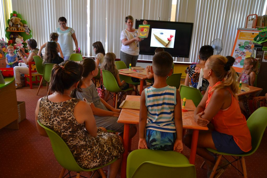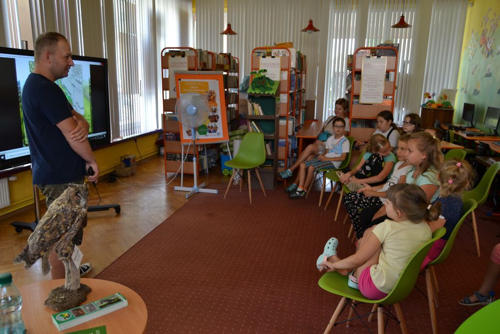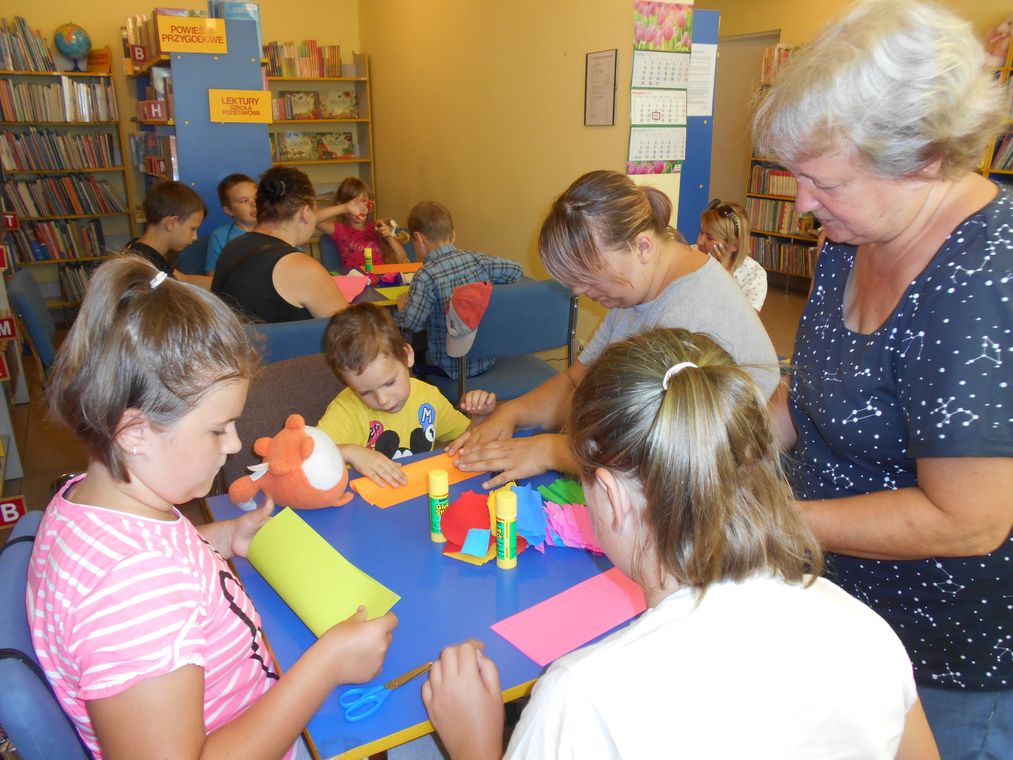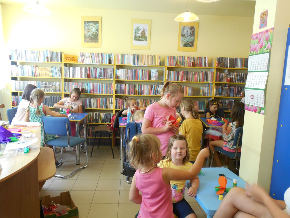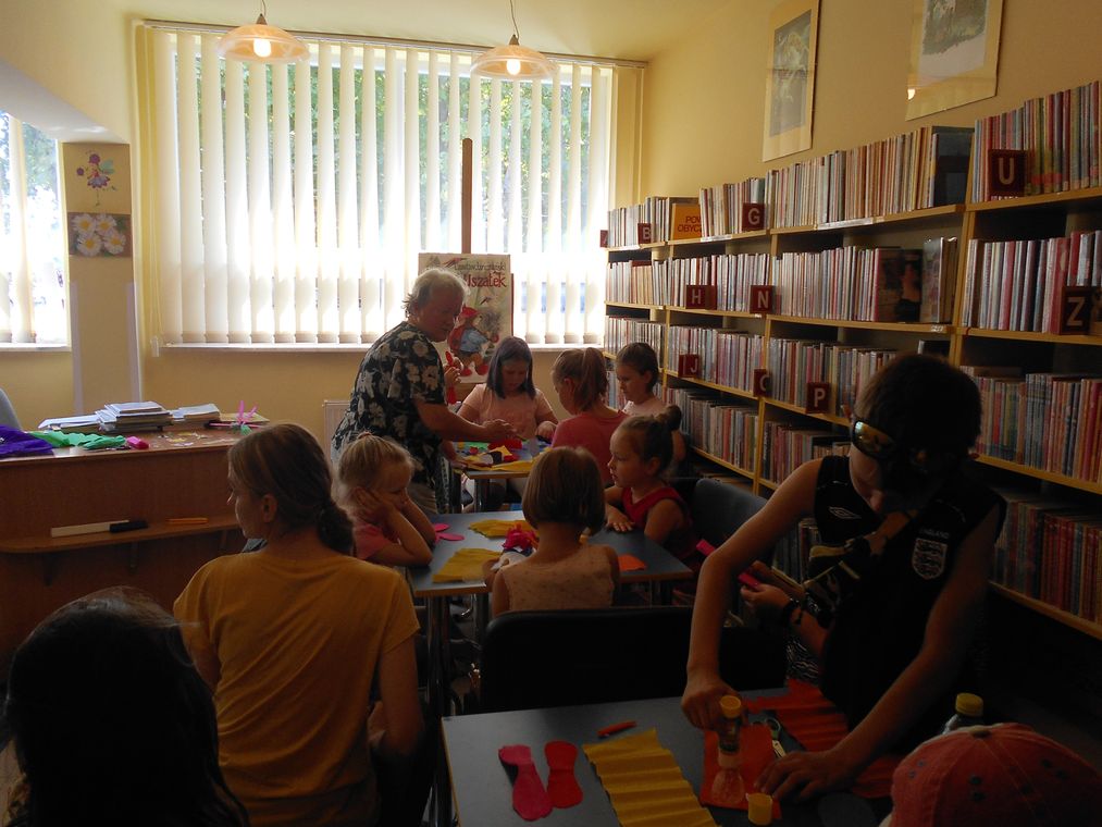 W Oddziale dla dzieci BG plan wakacyjnych spotkań podzielono na dwa bloki tematyczne. W lipcu realizowano program pod hasłem „Pomysłowe wakacje” natomiast w sierpniu „Wakacyjny zawrót głowy”, w ramach których wędrowano po świecie, kosmicznych przestworzach i średniowiecznych zamkach. Po każdym takim spotkaniu Oddział dla dzieci wypełniały prace plastyczne inspirowane wysłuchanymi opowieściami. Bardzo dużą popularnością, i to nie tylko wśród najmłodszych, cieszyły się „spotkania niespodzianki”, które prowadzili zaproszeni goście. Spotkania z robotyką poprowadził Robert Chrząstek wprowadzając uczestników w świat zabawy programowania i kodowania. O swoich wrażeniach z pobytu w Indiach opowiadał znany tarnobrzeski fotoreporter Bogdan Myśliwiec ilustrując je bardzo ciekawymi zdjęciami. Grzegorz Machnik odkrył tajniki gry królewskiej, jaką są szachy. Janusz Wepsięć z Regionalnego Centrum Promocji Obszaru Natura 2000 pokazał jak urokliwe są wiślane tereny wokół Tarnobrzega oraz wytłumaczył co to jest korytarz ekologiczny, czemu i komu ma służyć. Natomiast Jolanta Tworek, autorka wierszy dla dzieci, opowiedziała o swojej pasji pisania, do których bodźce czerpie z otaczającej fauny i flory. Inspiracją do przeprowadzenia ciekawych spotkań była też prezentowana w Bibliotece wystawa "Lalki świata", po obejrzeniu której dzieci wykonały lalki daruma, matrioszki i lalki przeszkadzajki.