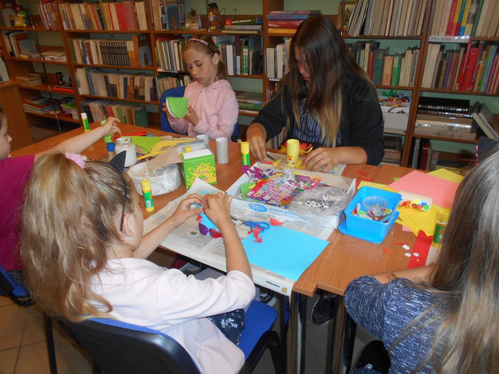 Tematem przewodnim spotkań literacko – plastycznych realizowanych w Filii nr 1 był pies i kot. W trakcie zajęć czytano teksty miedzy innymi Doroty Kozioł, Małgorzaty Połeć-Rozbickiej i Barbary Gawryluk, wyszukiwano informacje i ciekawostki w dostępnych w bibliotece czasopismach, a na zakończenie tworzono prace plastyczne.