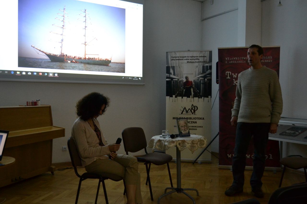 Autorka opowiedziała o kulisach powstania książki i swoim rozmówcy Ziemowicie Barańskim – jachtowym kapitanie żeglugi wielkiej, instruktorze i wykładowcy żeglarstwa, autorze książki „Meteorologia. Vademecum dla żeglarzy”. W latach 1956–2010 odbył w sumie 100 morskich rejsów i kilkakrotnie odwiedził ponad 700 różnych portów morskich. Zwróciła uwagę, że przeprowadzenie wywiadu nie było łatwe, gdyż Ziemowit Barański to osoba niezwykle skromna, z trudem, zwłaszcza na początku rozmowy, dzieląca się swoimi przeżyciami. Wypowiedź Joanny Czyszczoń dopełnił Tomasz Nowotarski. Barwne opowieściami z rejsu po najdalszych zakątkach świata udokumentował własnoręcznie wykonanymi fotografiami.