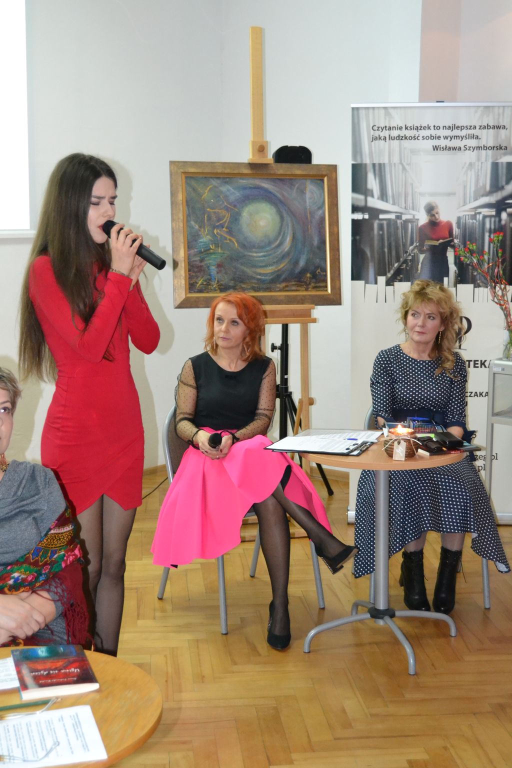 21 lat temu wyjechałam z Tarnobrzega, w którym spędziłam 11 lat będących najpiękniejszym i najwspanialszym czasem w moim życiu, stąd moja miłość i przywiązanie do tego miasta i ludzi tu mieszkających Przyjeżdżam tu, by z serca podziękować za chwile tu przeżyte. Wiersze piszę bo, rzeczywistość i poezja to jedno – powiedziała poetka witając się z publicznością.