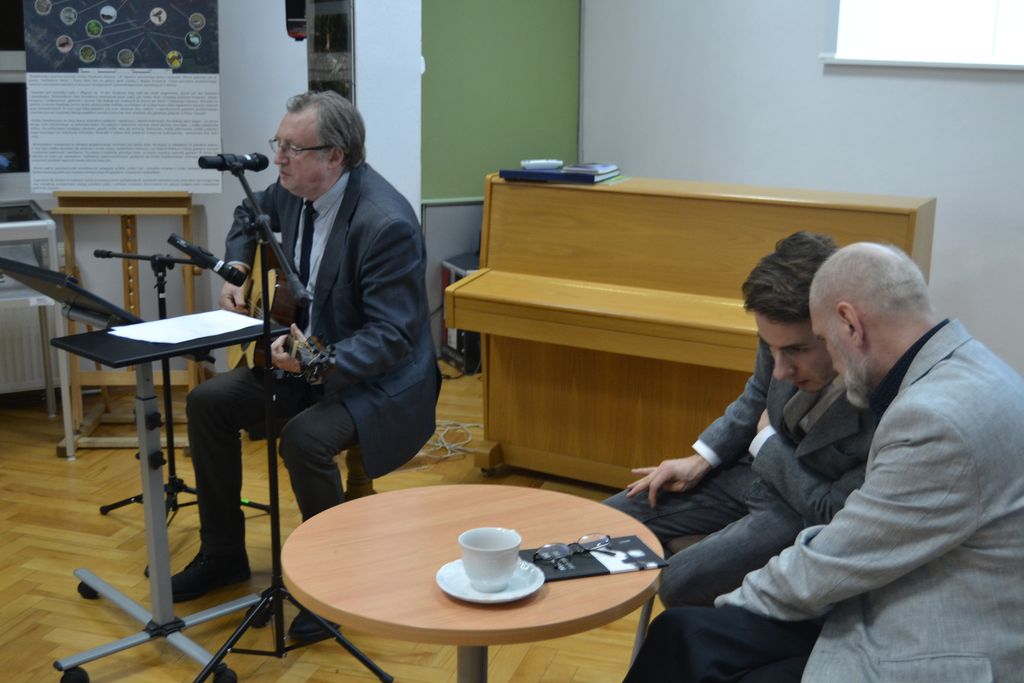 Gościem specjalnym wieczoru poetyckiego, 1 lutego b.r., był Mychajło Zaricznyj, autor wstępu do wcześniejszego tomiku poety - „Nie przysypuj gruszkami popiołu.” Tym razem przewodniczący rady naukowej Wydziału Mechaniczno-Matematycznego Uniwersytetu Lwowskiego, wybitny matematyk i poeta jednocześnie, wystąpił w roli barda, wykonując swoje autorskie kompozycje do tekstów Jakuba Domoradzkiego i jego ojca Stanisława.
