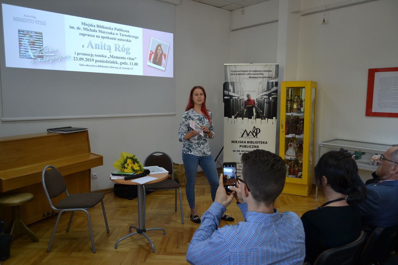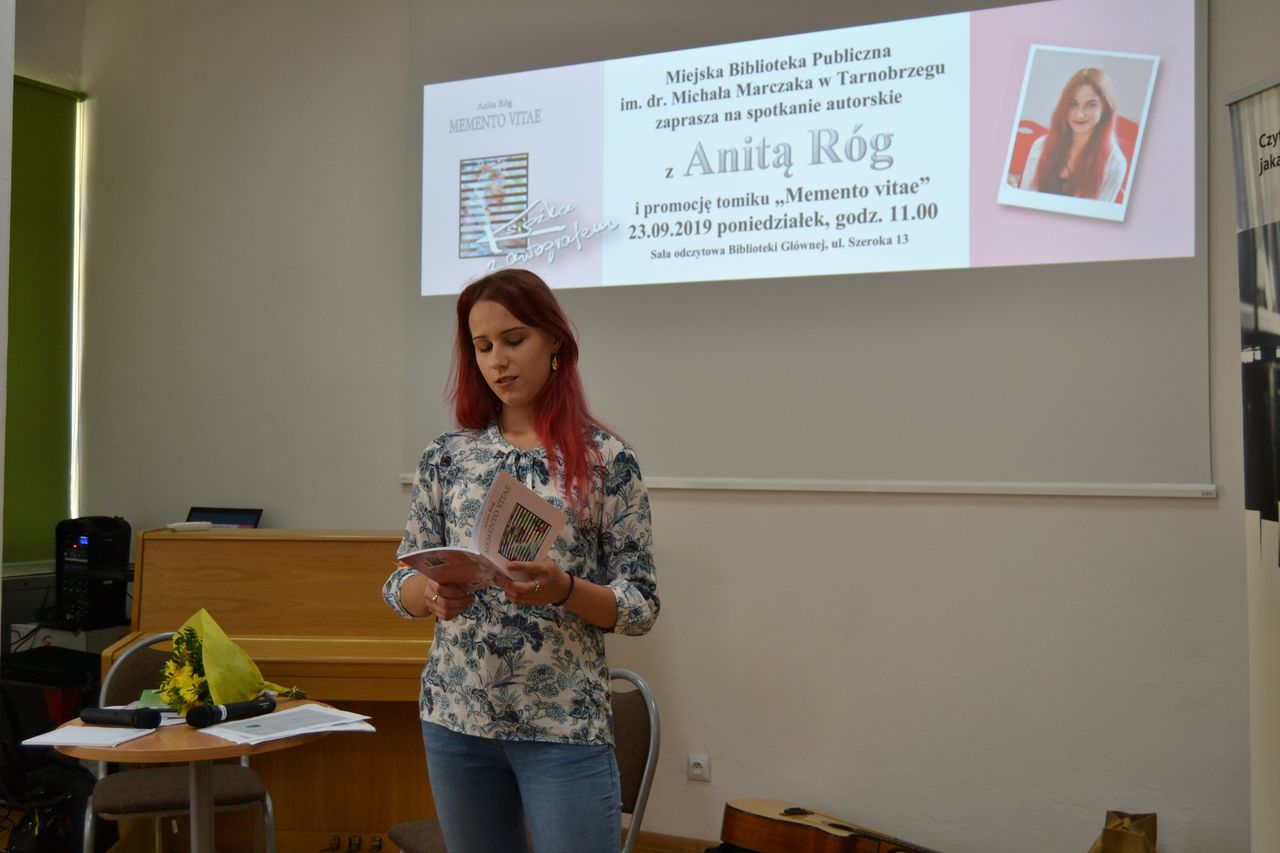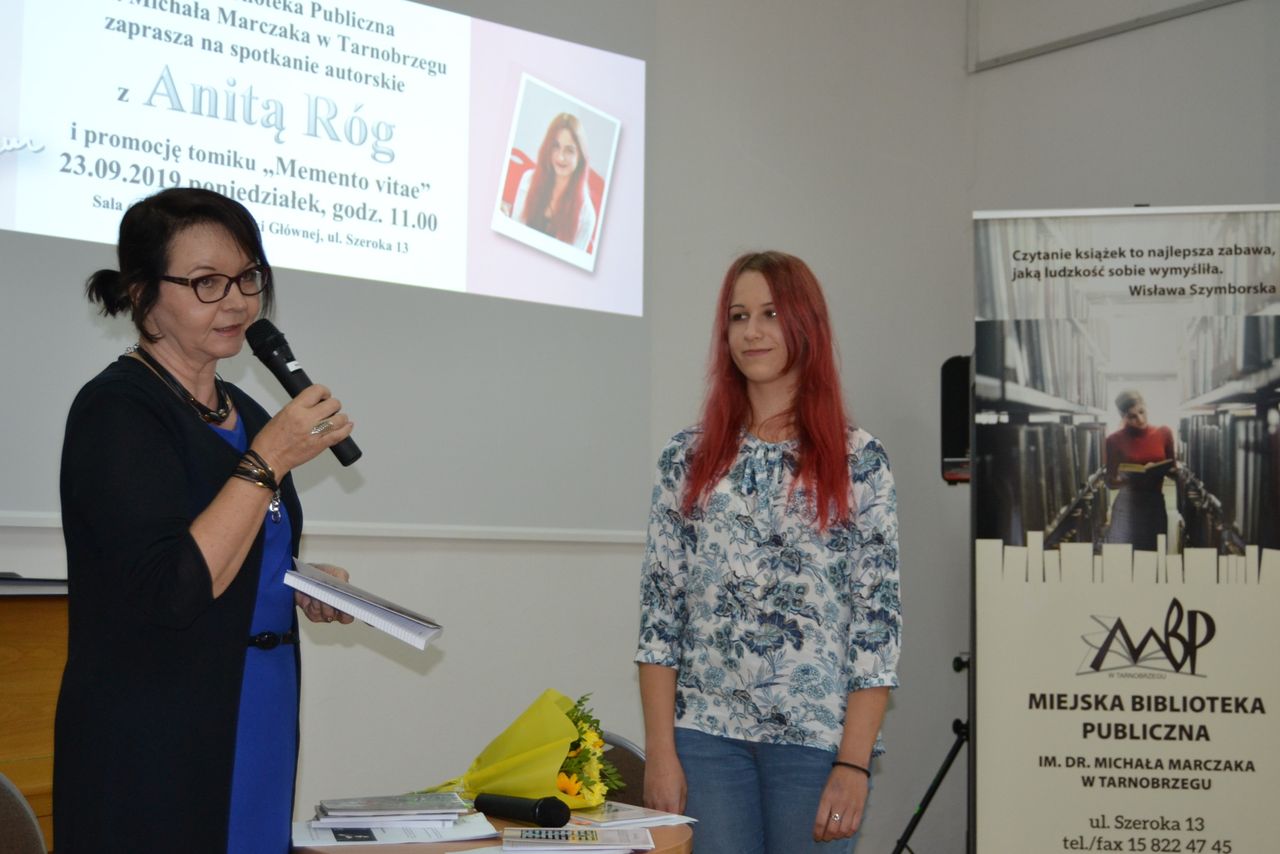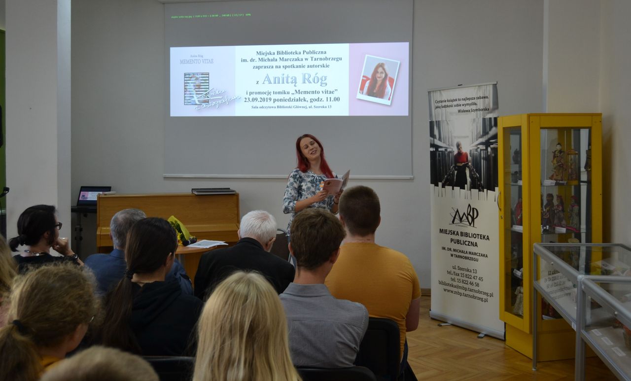 Piąty już tomik poezji "Memento vitae" 23 września 2019 roku w Miejskiej Bibliotece Publicznej zaprezentowała Anita Róg. Autorka pochodzi z Porąb Dymarskich. Obecnie studiuje romanistykę na Uniwersytecie Marii Curie-Skłodowskiej w Lublinie. Poetka, jak sama przyznała podczas spotkania, ma wiele pasji, zaczynając od treningów siłowych, dietetyki, przez grę na gitarze, śpiewanie i podróże.