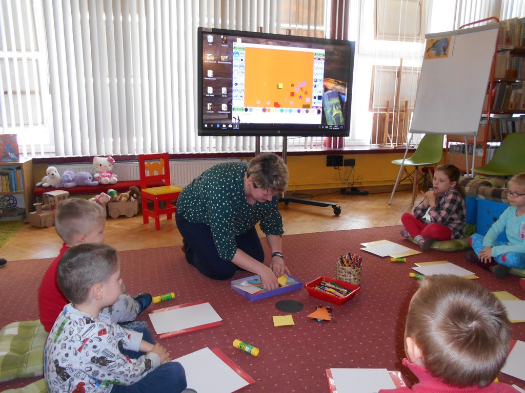 Promowanie książek dla dzieci oraz wspieranie czytania przez najmłodszych, to idea przyświecająca organizowanym w tym dniu wydarzeniom. Dzieci z Przedszkola „Bajka” uczestniczące w świątecznym spotkaniu, po wysłuchaniu wierszowanej opowieści Danuty Wawiłow pt. „Posłuchajcie bajki nowej prostokątnej i kwadratowej”, z zaangażowaniem wykonywały przygotowane zadania. Rozpoznawały podstawowe figury geometryczne, wcieliły się w role ilustratorów książek dla dzieci tworząc kolorowe postaci z trójkątów, kółek, kwadratów i prostokątów, bawiły się, a nawet śpiewały bajkową piosenkę. Uwagę przedszkolaków przyciągnęły wyeksponowane na okolicznościowej wystawce książeczki. Dzieci przeglądały je z ciekawością i zainteresowaniem. Na zakończenie spotkania pięciolatki pochwaliły się swoimi bajkowymi ilustracjami, o których chętnie opowiadały. W ten sposób uczciły bohaterkę wydarzenia – książeczkę dla dzieci.