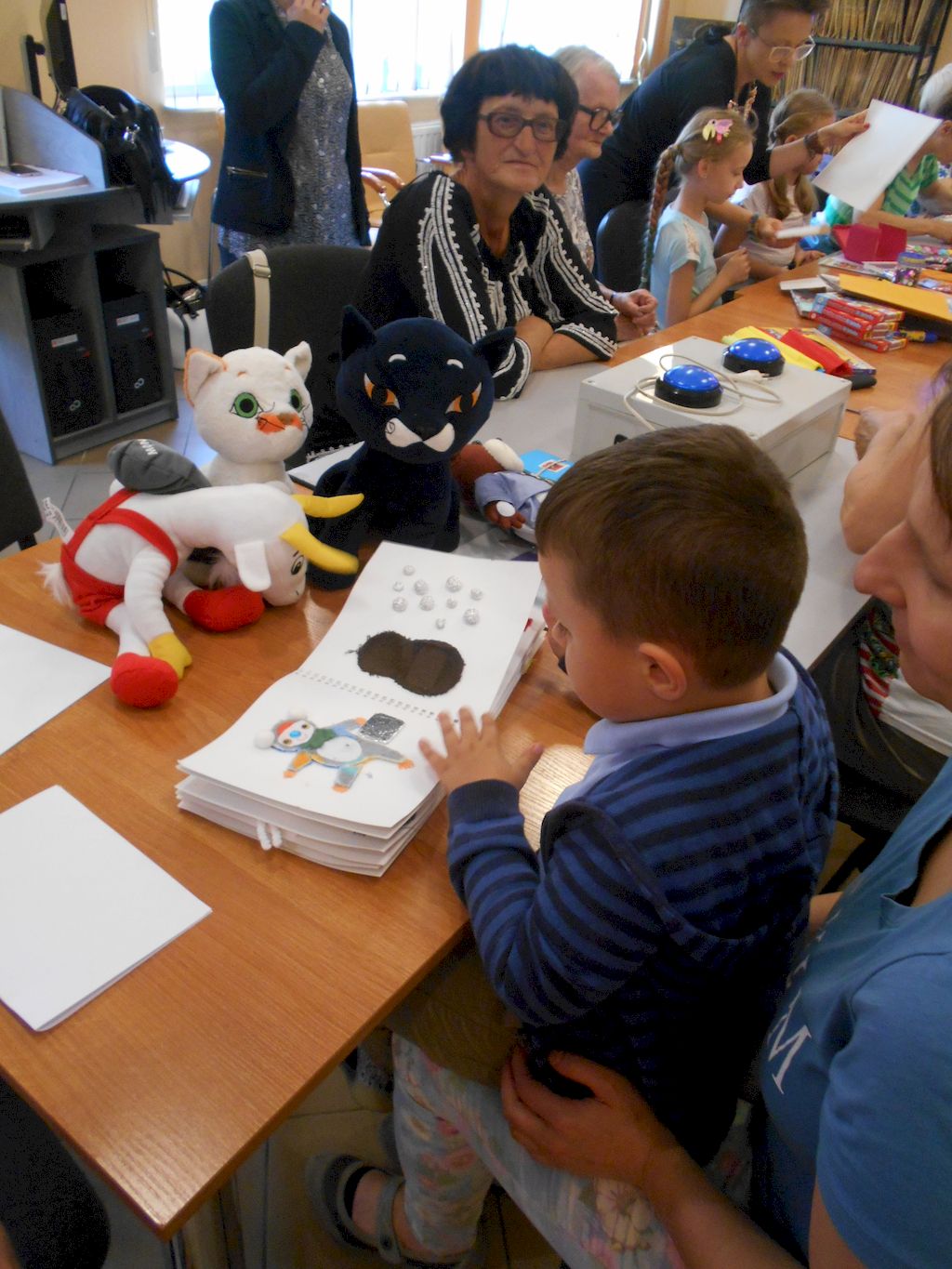 Były także dotykowe repliki lalek filmowych oraz tyflografiki z postaciami z bajek. Spotkanie prowadziła pani Katarzyna Lubas – dyrektor Muzeum, która na początku przybliżyła wszystkim historię filmów animowanych i techniki powstawania animacji. Następnie odbyły się warsztaty plastyczne. Za sprawą "Czarodziejskiego ołówka - rejestratora i czytnika dźwięku oraz materiałów plastycznych uczestnicy stworzyli niepowtarzalne pozytywki. Na zakończenie spotkania odbyła się projekcja filmowa oraz sesja zdjęciowa z Reksiem i Misiem Uszatkiem. Warsztaty zorganizowane zostały w ramach współpracy z Fundacją Szansa dla Niewidomych w Rzeszowie.
