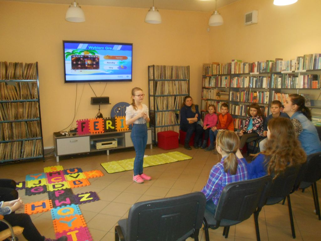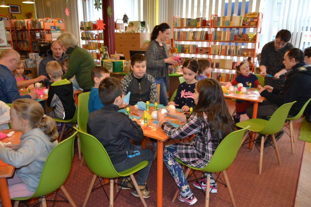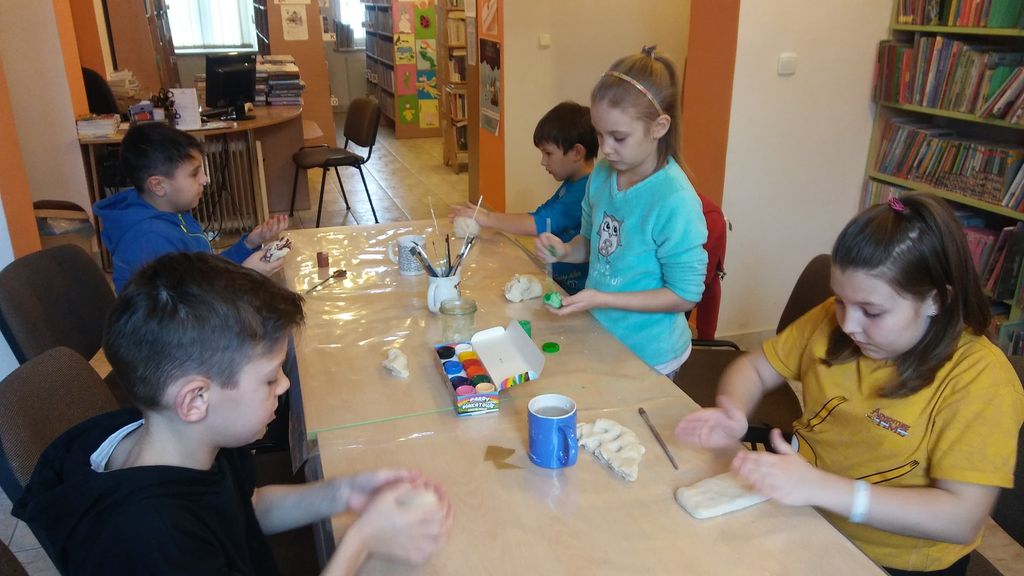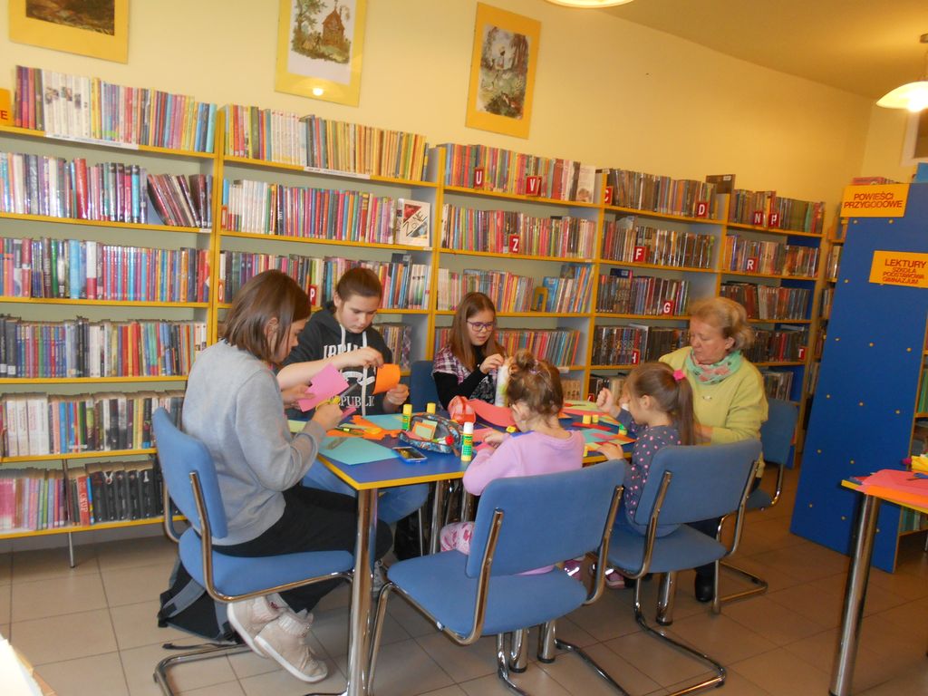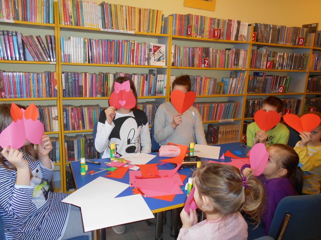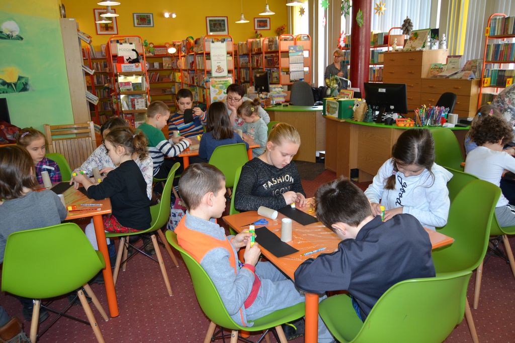W Oddziale dla dzieci i młodzieży Biblioteki Głównej m.in. „puszą się” śniegowe krajobrazy wykonane z brystolu, waty, patyczków i kolorowego papieru oraz obszerna makieta ukazująca „ Wielki mróz w Dolinie Muminków”. W Filii nr 1 uczestnicy spotkań „Jak to brzmi”, swoje doznania muzyczne , przełożyli na obraz, tworząc tym samym prace pełne koloru i ekspresji. W Filii nr 2 prace dzieci zdominowała biel i marzenia o śnieżnej zimie. W Filii nr 3 inspiracją były zimowe przygody Pingwinka z zaczarowanej zagrody i Kubusia Puchatka. Śnieżnobiałe anioły zdobią już Filię nr 5 . Natomiast sikorki i gile z masy solnej można podziwić w Filii nr 6. Czytelników odwiedzających Filię nr 8 dziecięca fantazja zaprasza do zimowego lasu. Wśród prezentowanych prac szczególną uwagę przyciągają czerwone serduszka i laurki wykonane z okazji „Dnia Zakochanych”, który akurat w tym roku przypadł w czasie ferii. Zajęcia plastyczne to nie jedyna propozycja z jaką do dzieci wyszli bibliotekarze. Bardzo dużym powodzeniem cieszyły się również spotkania z książką, w trakcie których uczestnicy wraz z literackimi bohaterami wędrowali po odległych krainach. Opowiadania o Kubusiu Puchatku, najpiękniejsze zimowe baśnie czy przezabawne wiersze Doroty Gellner rozbudzały wyobraźnię dzieci, inspirowały do wspólnej zabawy i zachęcały do wykonania prac plastycznych.