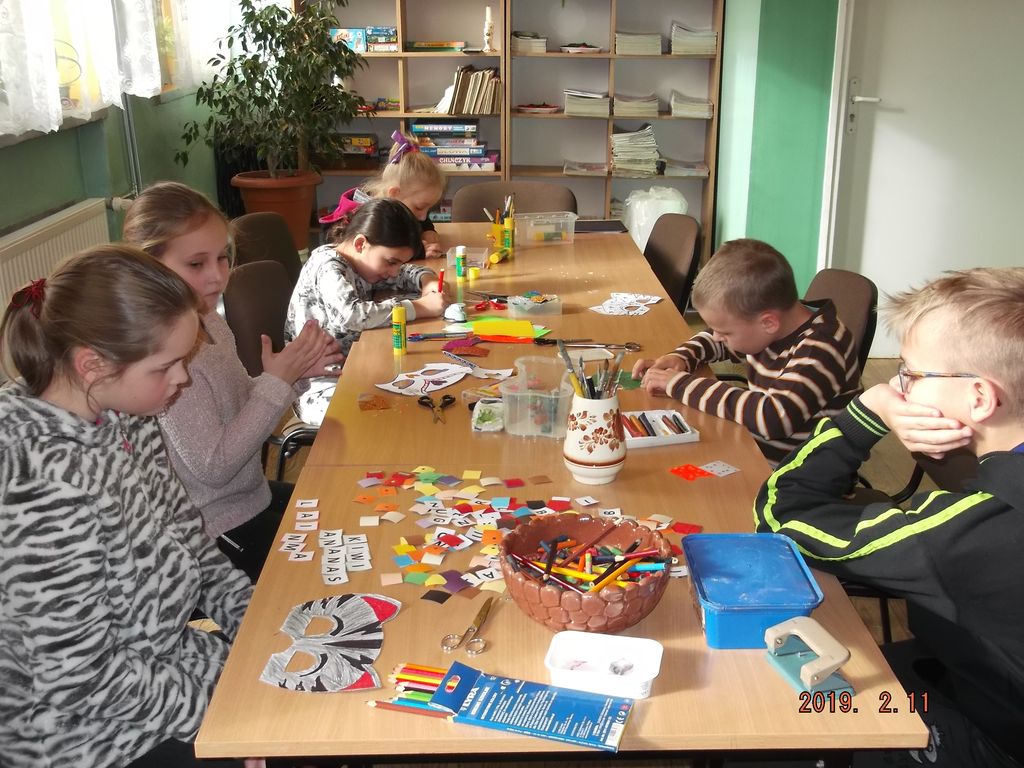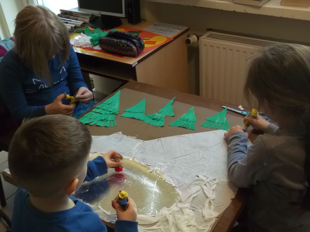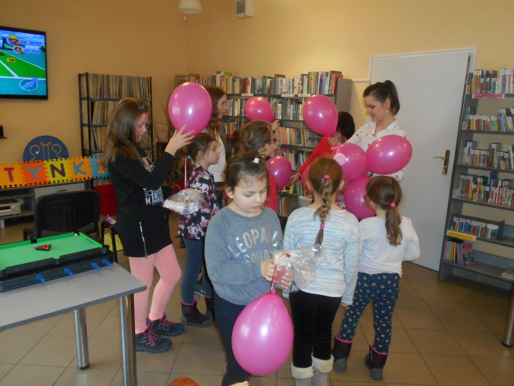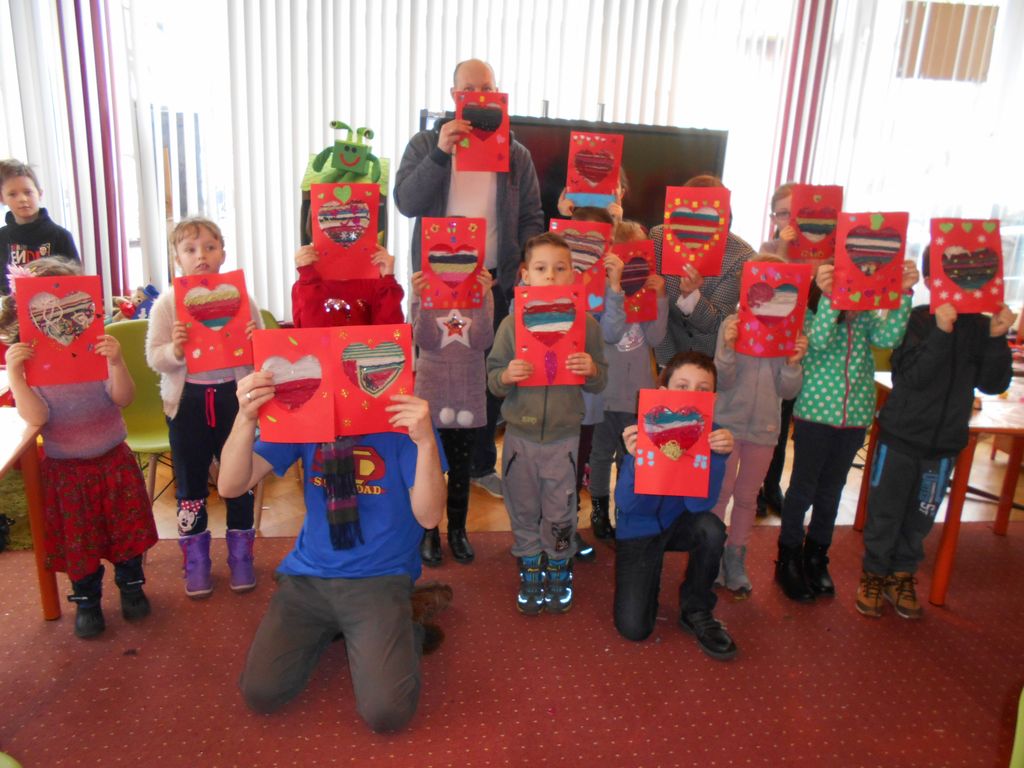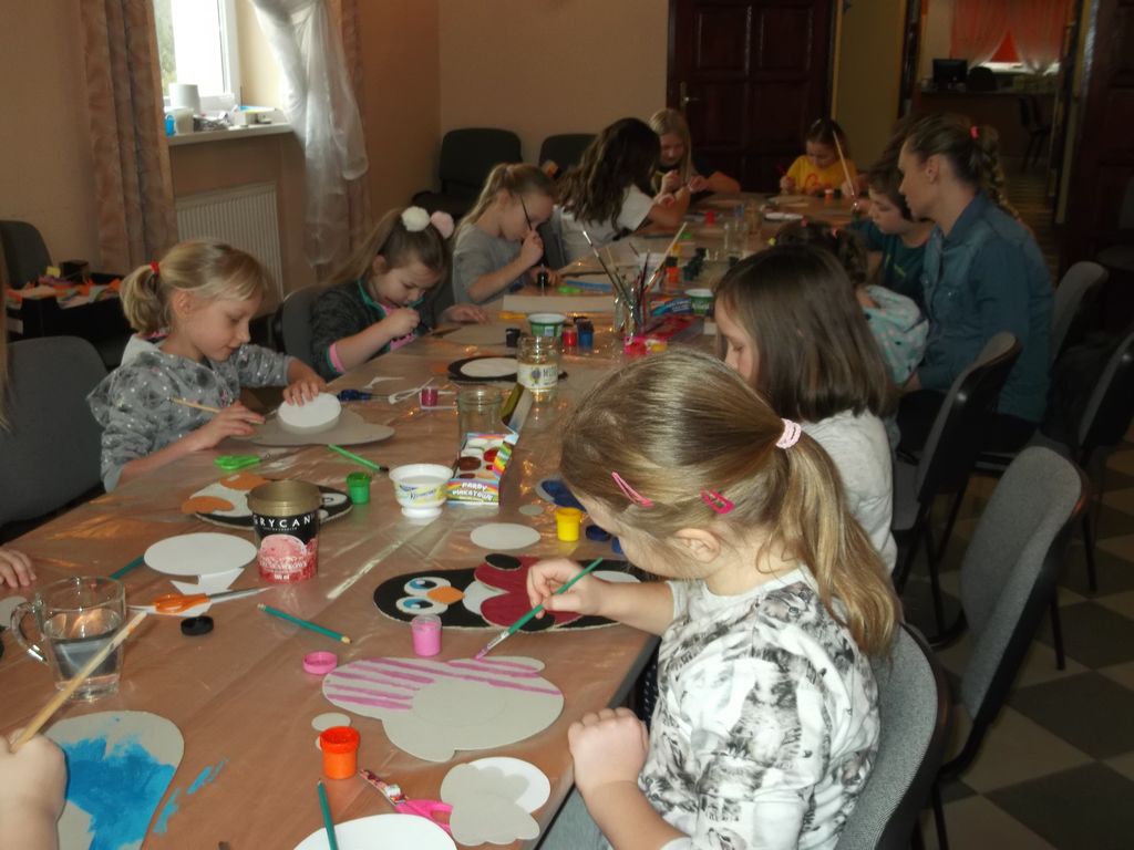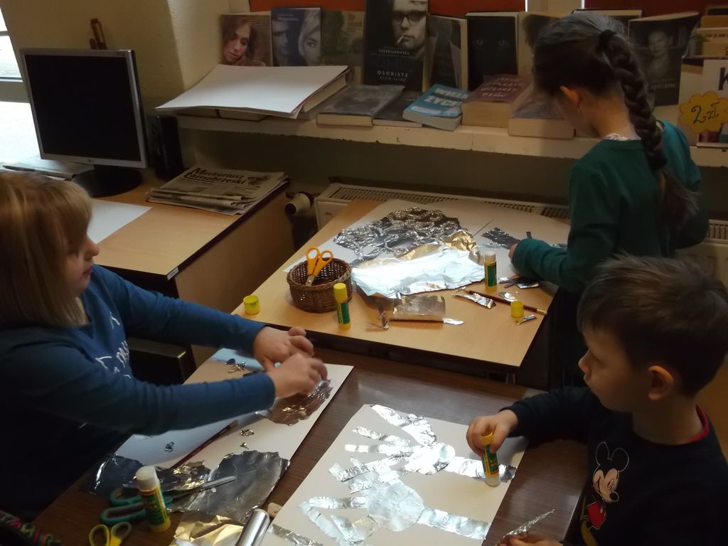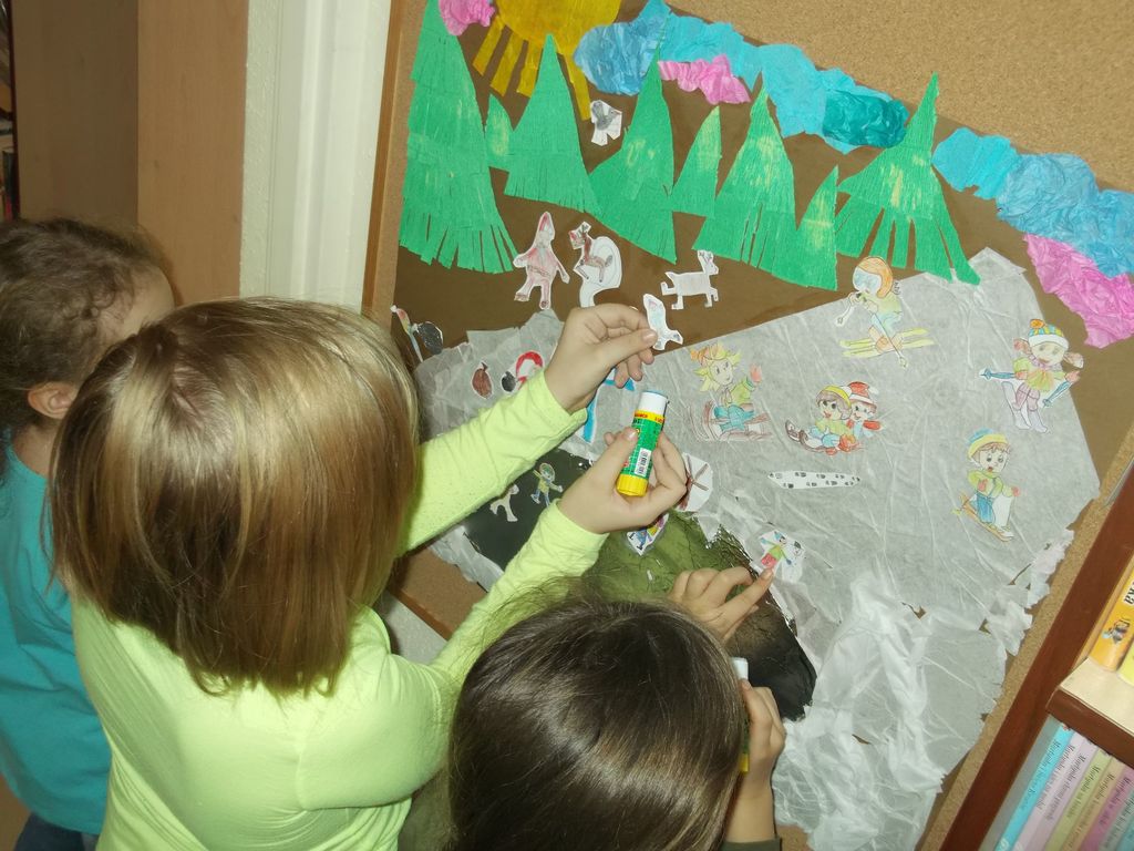 W Oddziale dla dzieci i młodzieży Biblioteki Głównej m.in. „puszą się” śniegowe krajobrazy wykonane z brystolu, waty, patyczków i kolorowego papieru oraz obszerna makieta ukazująca „ Wielki mróz w Dolinie Muminków”. W Filii nr 1 uczestnicy spotkań „Jak to brzmi”, swoje doznania muzyczne , przełożyli na obraz, tworząc tym samym prace pełne koloru i ekspresji. W Filii nr 2 prace dzieci zdominowała biel i marzenia o śnieżnej zimie. W Filii nr 3 inspiracją były zimowe przygody Pingwinka z zaczarowanej zagrody i Kubusia Puchatka. Śnieżnobiałe anioły zdobią już Filię nr 5 . Natomiast sikorki i gile z masy solnej można podziwić w Filii nr 6. Czytelników odwiedzających Filię nr 8 dziecięca fantazja zaprasza do zimowego lasu. Wśród prezentowanych prac szczególną uwagę przyciągają czerwone serduszka i laurki wykonane z okazji „Dnia Zakochanych”, który akurat w tym roku przypadł w czasie ferii. Zajęcia plastyczne to nie jedyna propozycja z jaką do dzieci wyszli bibliotekarze. Bardzo dużym powodzeniem cieszyły się również spotkania z książką, w trakcie których uczestnicy wraz z literackimi bohaterami wędrowali po odległych krainach. Opowiadania o Kubusiu Puchatku, najpiękniejsze zimowe baśnie czy przezabawne wiersze Doroty Gellner rozbudzały wyobraźnię dzieci, inspirowały do wspólnej zabawy i zachęcały do wykonania prac plastycznych.