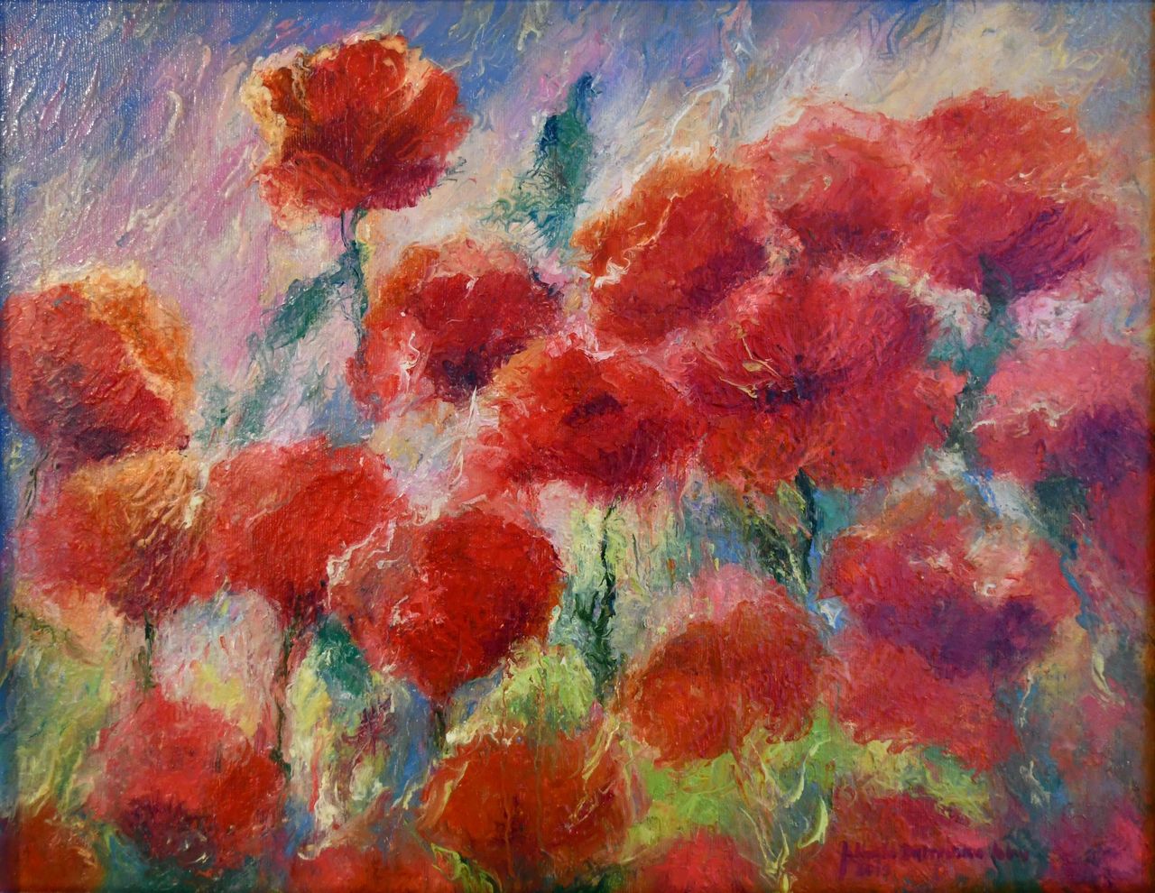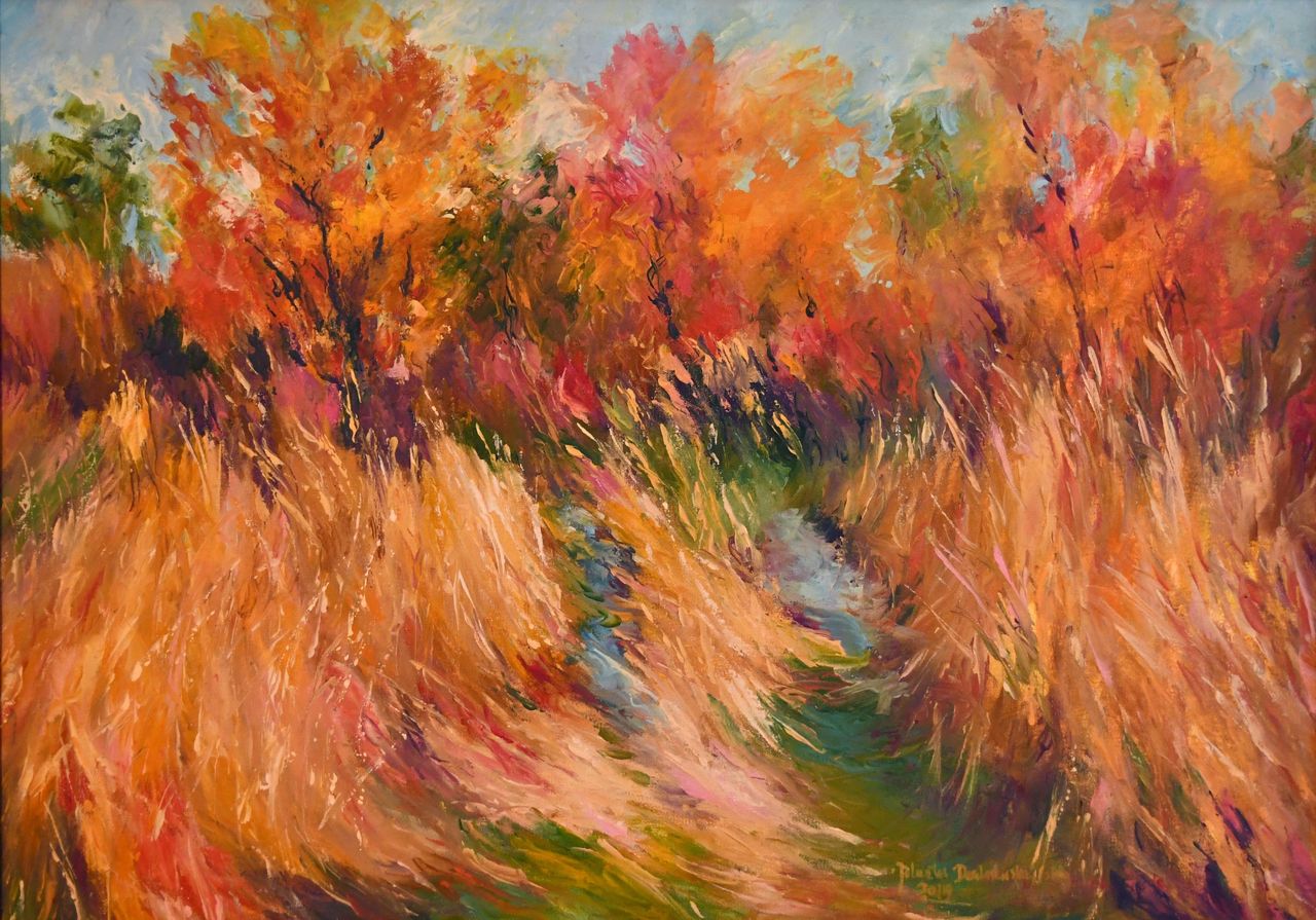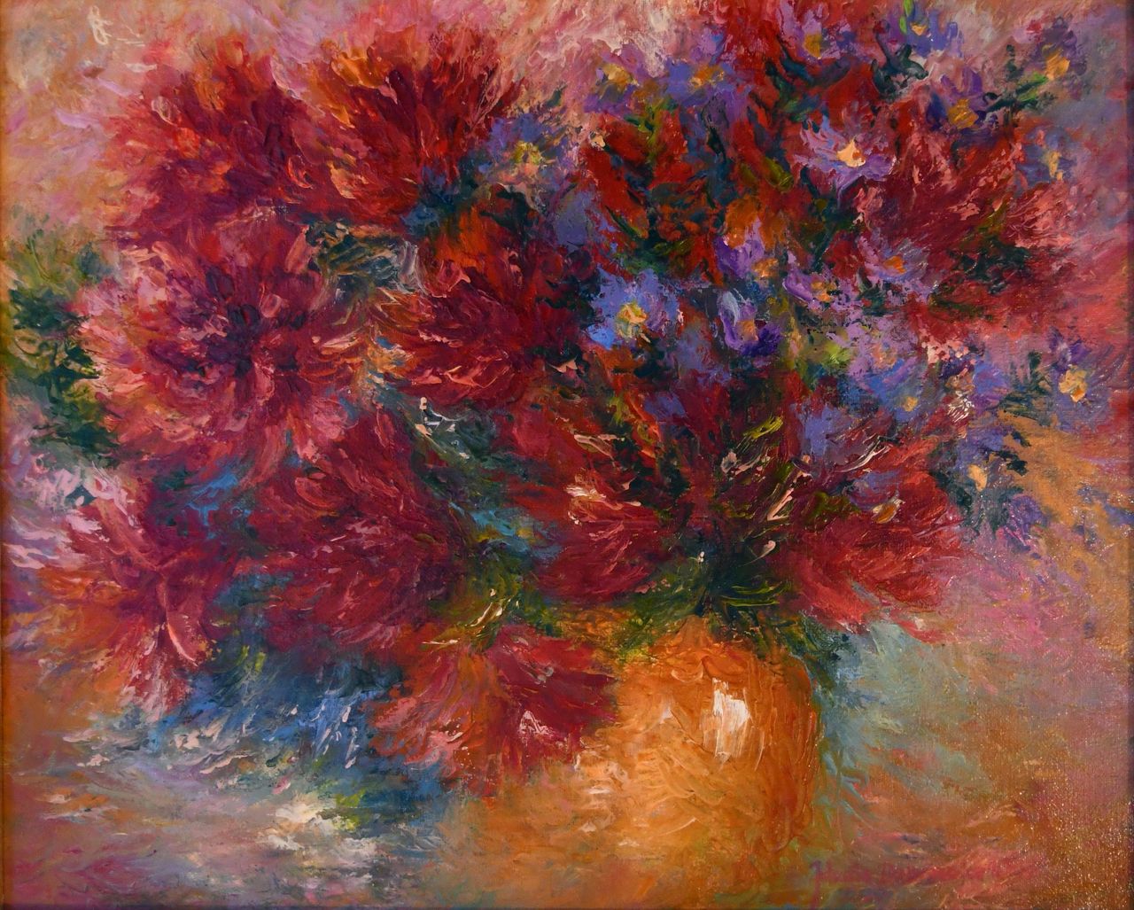 Malarstwo i tkactwo to dziedziny sztuki, które stanowiły jednocześnie drogę zawodową i pielęgnowane hobby autorki . Od kilku lat przebywa na emeryturze co sprzyja swobodzie i niezależności, bez których trudno o realizację twórczej pasji. Uczestniczyła w licznych plenerach malarskich w Polsce i za granicą. Nie tylko pejzaż w różnych porach roku ale również kwiaty stanowią główny temat jej obrazów a istotną, rozpoznawalną cechą to gra kolorów i barwne refleksy dające wrażenie migotania. Dotychczas malarka eksponowała swoje prace w Tarnobrzegu i okolicznych miejscowościach, jak również na terenie całego kraju. Na obecnej wystawie prezentowane są prace powstałe w ostatnich miesiącach.
