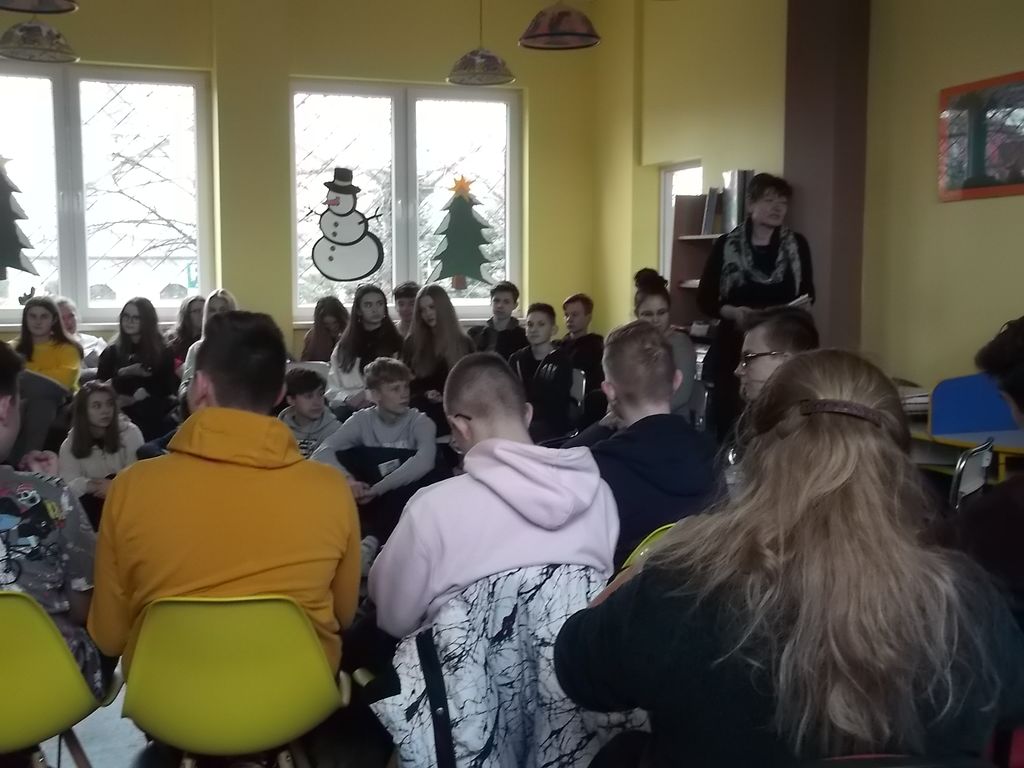 Trzecioklasiści i przedszkolaki odbywając „zimowe podróże po literaturze” próbowali „zakochać się w czytaniu”. Ciekawe wiersze, zabawne opowiadania, z którymi się zapoznali, z pewnością im to ułatwiły. Natomiast uczniowie kl. VIII wzięli udział w lekcji bibliotecznej „Czy codzienna praca i pamięć, to też patriotyzm?” nawiązującej do historii naszego regionu. Spotkania, oprócz wiedzy, dostarczyły wielu refleksji i spostrzeżeń, a także przyjemności i zabawy.