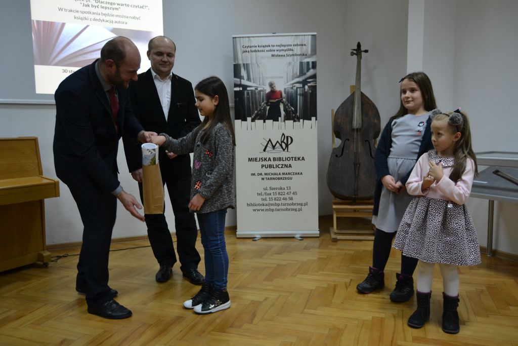 Nagrody i wyróżnienia laureatom konkursu wręczyli, w imieniu Prezydenta Miasta Tarnobrzega Dariusza Bożka – Dariusz Furman, Stanisława Mazur – dyrektor MBP oraz Jacek Łapiński.