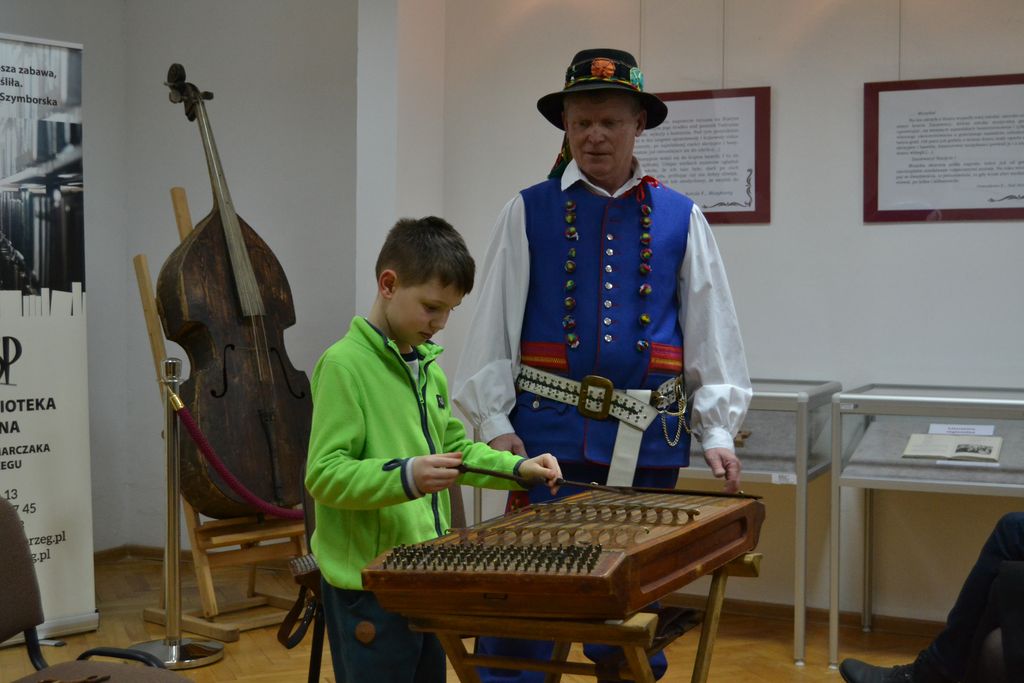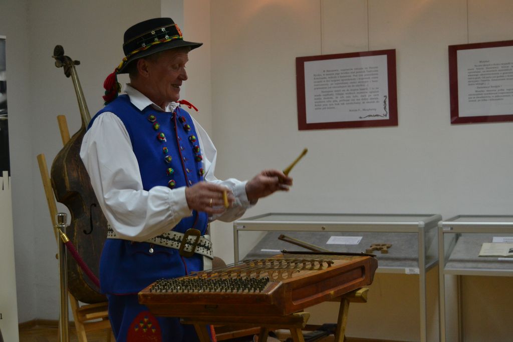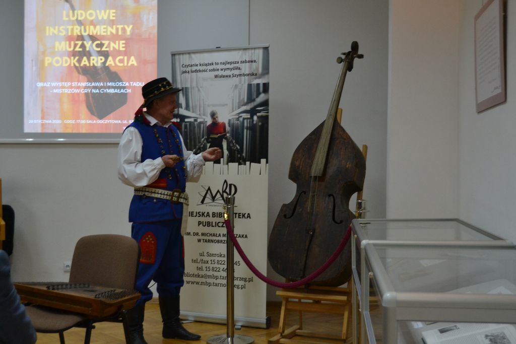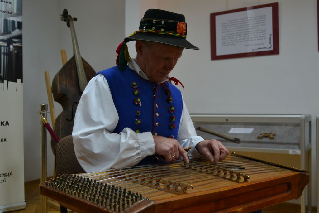 Wśród fujarek i piszczałek na szczególna uwagę zasługuje rożek pasterski wykonany z kory wierzbowej. Spośród bardziej zaawansowanych konstrukcyjnie instrumentów wyróżniają się XIX wieczne basy pochodzące z okolic Kolbuszowej oraz dwie pary skrzypiec, dłubane z 1942 r., z miejscowości Krzywa i dziewiętnastowieczne z Machowa. Prezentowane na wystawie eksponaty pochodzą z kolekcji Muzeum Kultury Ludowej w Kolbuszowej oraz Doroty Kozioł z Tarnobrzega. Całość ekspozycji uzupełnia literatura ze zbiorów Miejskiej Biblioteki Publicznej. Wernisaż wystawy, który odbył się 28 stycznia 2020 roku uświetnili Stanisław i Miłosz Tadla – wirtuozi gry na cymbałach, którzy nie tylko zaprezentowali w mistrzowskim wykonaniu regionalne polki i szlagiery muzyki pop ale także przybliżyli tajniki gry oraz historię instrumentu. Za kolebkę uznaje się Indie, chociaż nie brakuje teorii upatrujących jej w Persji. Na Rzeszowszczyznę cymbały przywędrowały z Łuku Karpat i tu zadomowiły się na dobre. Jest nas, cymbalistów, co prawda niewielu ale jak widzę, instrument ten ma coraz więcej zwolenników – powiedział Stanisław Tadla, senior muzykującego rodu.