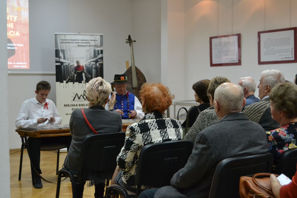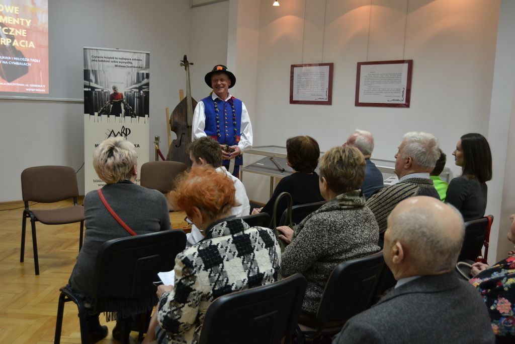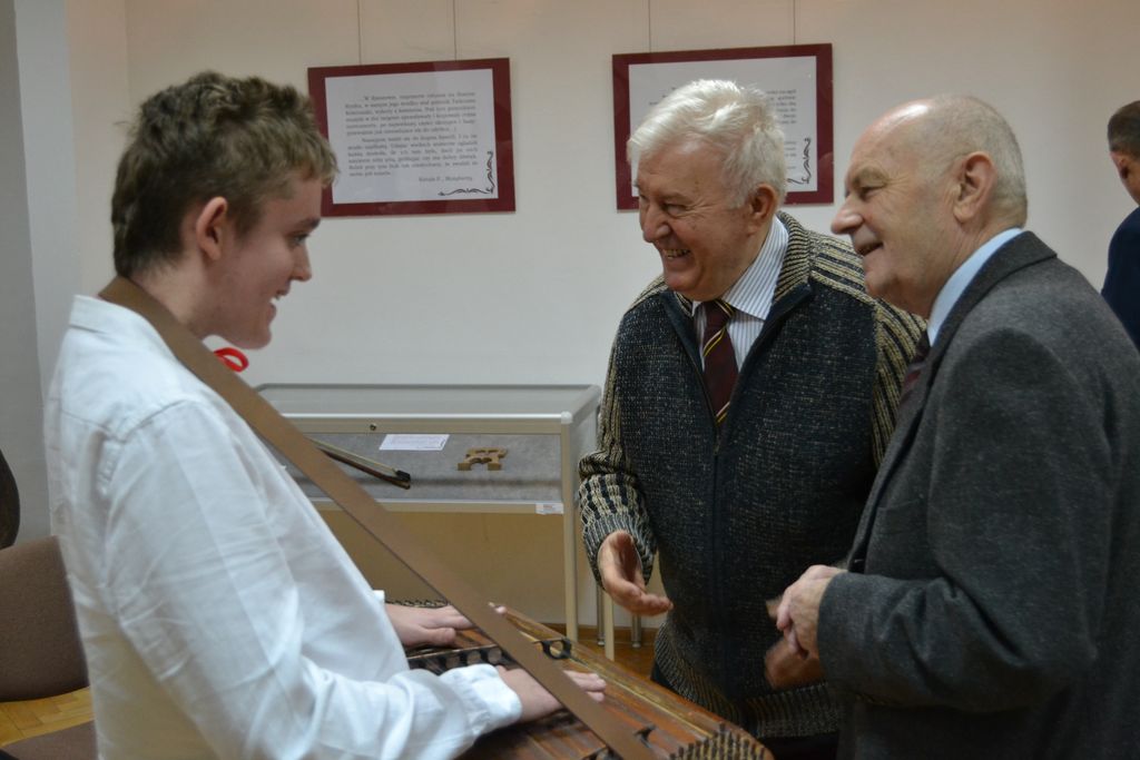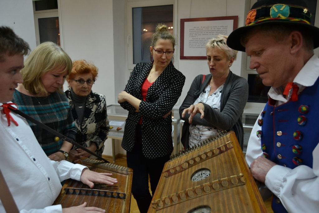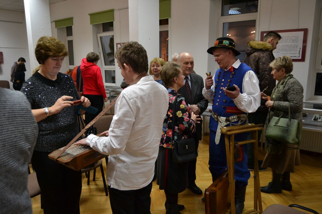 Wśród fujarek i piszczałek na szczególna uwagę zasługuje rożek pasterski wykonany z kory wierzbowej. Spośród bardziej zaawansowanych konstrukcyjnie instrumentów wyróżniają się XIX wieczne basy pochodzące z okolic Kolbuszowej oraz dwie pary skrzypiec, dłubane z 1942 r., z miejscowości Krzywa i dziewiętnastowieczne z Machowa. Prezentowane na wystawie eksponaty pochodzą z kolekcji Muzeum Kultury Ludowej w Kolbuszowej oraz Doroty Kozioł z Tarnobrzega. Całość ekspozycji uzupełnia literatura ze zbiorów Miejskiej Biblioteki Publicznej. Wernisaż wystawy, który odbył się 28 stycznia 2020 roku uświetnili Stanisław i Miłosz Tadla – wirtuozi gry na cymbałach, którzy nie tylko zaprezentowali w mistrzowskim wykonaniu regionalne polki i szlagiery muzyki pop ale także przybliżyli tajniki gry oraz historię instrumentu. Za kolebkę uznaje się Indie, chociaż nie brakuje teorii upatrujących jej w Persji. Na Rzeszowszczyznę cymbały przywędrowały z Łuku Karpat i tu zadomowiły się na dobre. Jest nas, cymbalistów, co prawda niewielu ale jak widzę, instrument ten ma coraz więcej zwolenników – powiedział Stanisław Tadla, senior muzykującego rodu.