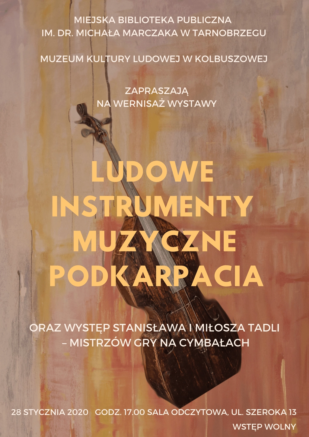 W Miejskiej Bibliotece Publicznej im. dr. Michała Marczaka w Tarnobrzegu w dniach 29.01.2020 do 06.03.2020 prezentowana jest wystawa „Ludowe instrumenty muzyczne Podkarpacia” przypominająca instrumenty dawnych kapel oraz narzędzia dźwiękowe występujące na Podkarpaciu. Zobaczyć tu można proste drewniane kołatki, terkotki i grzechotki. Gwizdki, gwizdałki i gliniane kogutki pełniące zarówno funkcję instrumentów sygnałowych jak i dziecięcych zabawek.