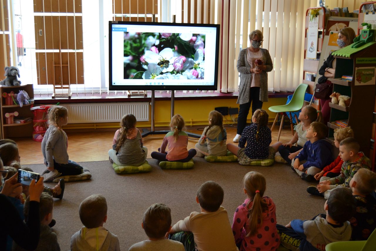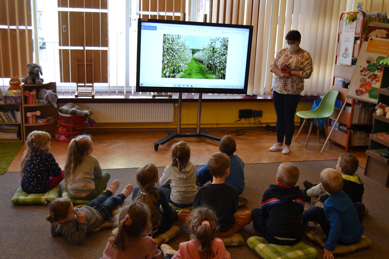 Bywają duże i małe, czerwone, zielone i żółte. Pyszne, chrupiące i pełne witamin. O czym mowa? O jabłku, rzecz jasna! 6 października z okazji Święta Rumianego Jabłuszka Oddział dla dzieci i młodzieży Biblioteki Głównej odwiedziły 4, 5 i 6-latki z Przedszkola „Bajka”. Dzieci dowiedziały się o walorach zdrowotnych tych smacznych owoców, poznały drogę - od pestki do jabłka, dowiedziały się, gdzie rosną jabłonie i jak ważna jest rola pszczół w przemianie kwitnących drzew w owoce oraz na czym polega praca sadownika.