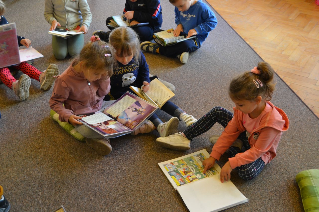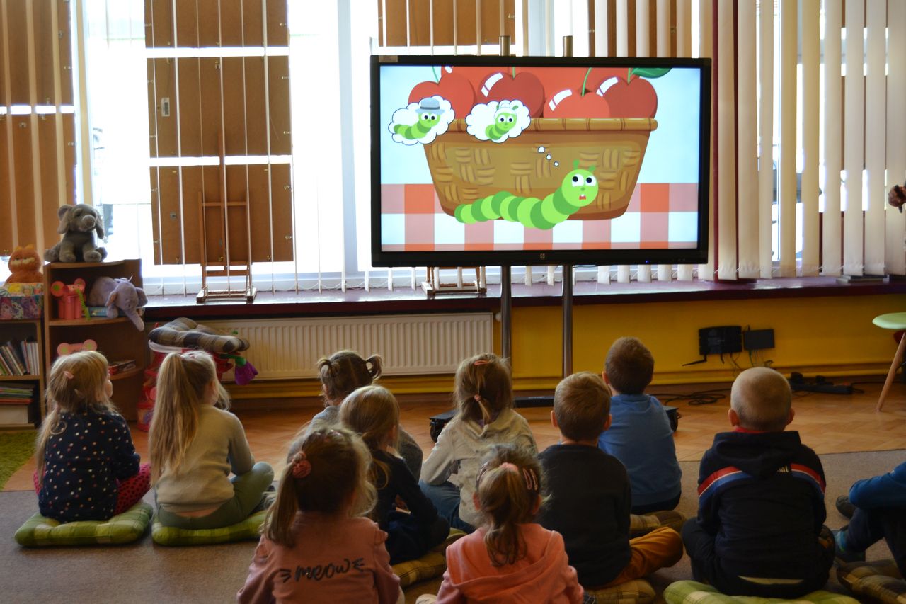Spotkanie zakończyło się wspólnym oglądaniem bajek z bibliotecznych półek oraz zobowiązaniem dzieci do codziennego jedzenia jabłek, które są źródłem witamin.