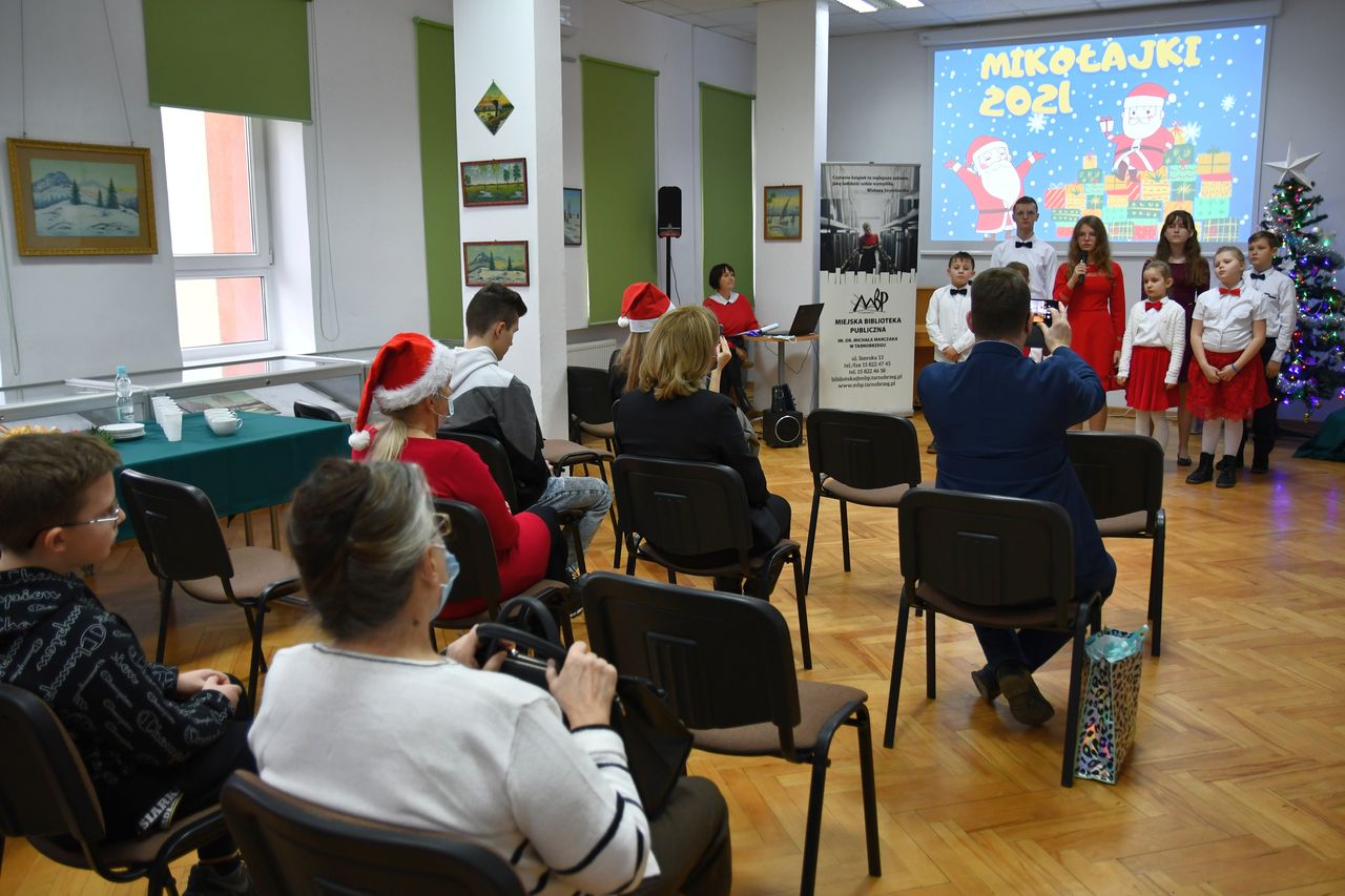 Rokrocznej mikołajkowej tradycji wręczania prezentów najmłodszym członkom Koła Polskiego Związku Niewidomych w Tarnobrzegu stało się zadość. W sobotę – 11 grudnia – sala odczytowa Biblioteki Głównej wypełniła się radosną i ciepłą atmosferą. W świąteczny nastrój wprowadziły kolędy i pastorałki odśpiewane przez uczniów Publicznej Katolickiej Szkoły Podstawowej im. św. Jana Pawła II w Tarnobrzegu.