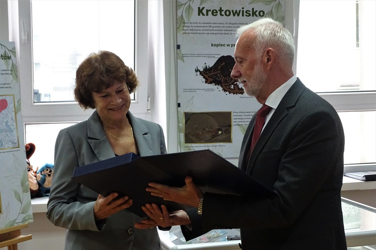 Dzisiaj oficjalnie, w obecności Prezydenta Dariusza Bożka, z funkcji Dyrektora, po 36 latach kierowania Biblioteką, ustąpiła przechodząc na zasłużoną emeryturę Stanisława Mazur. Prezydent na Jej ręce złożył pamiątkowy grawerton nie szczędząc przy tym ciepłych słów. Podziękował za lata owocnej pracy i współpracy oraz za stworzenie biblioteki przyjaznej ludziom.