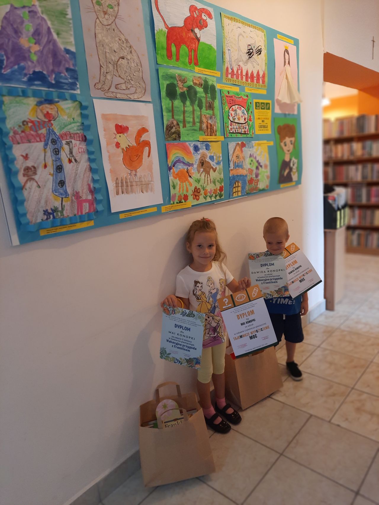 Tegoroczna oferta wakacyjnych konkursów spotkała się z dużym odzewem. Dzieci miały do wyboru konkursy plastyczne, czytelnicze oraz edukacyjne. Wpłynęły piękne prace przedstawiające kwietną łąkę oraz przygody bajkowego bohatera Franklina.