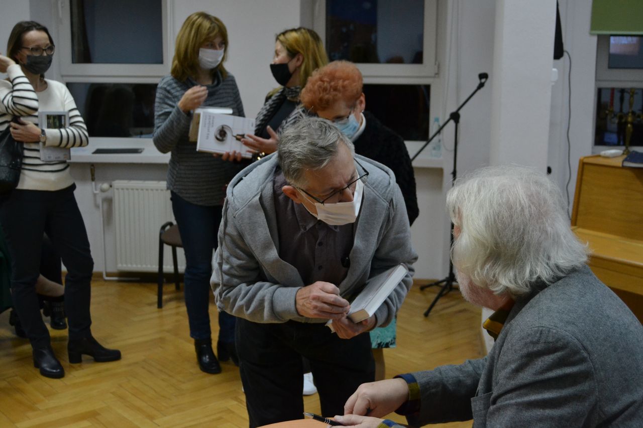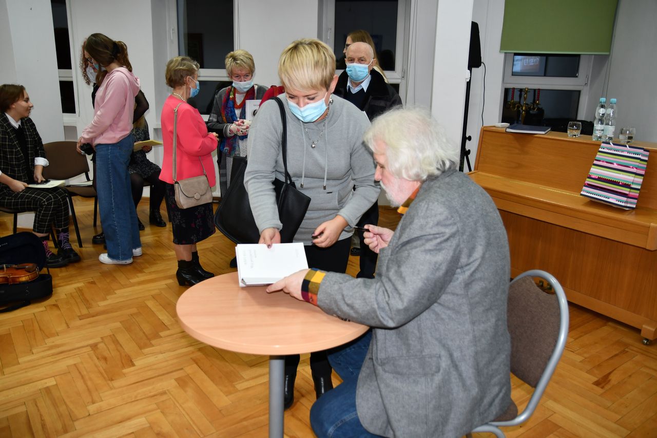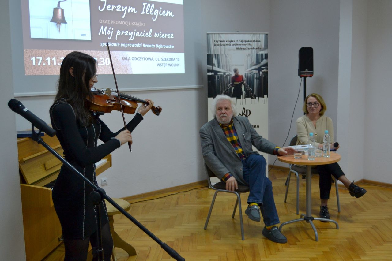 Na spotkaniu nie zabrakło także barwnych, często anegdotycznych, opowieści o bohaterach książki m. in. Adamie Zagajewskim, Annie i Stanisławie Barańczakach, Wisławie Szymborskiej, Czesławie Miłoszu, Annie Piwkowskiej czy Seamusie Heaney’u. Jerzy Illg odczytał także wyjątkowo ważne dla Niego wiersze i szkice o bliskich Mu ludziach. Wybrane utwory z książki przybliżyła także młodzież z I Społecznego Liceum Ogólnokształcącego im. Hetmana Jana Tarnowskiego w Tarnobrzegu, która pod opieką Renaty Dąbrowskiej przygotowała porywający pokaz recytacji, śpiewu i gry na skrzypcach. Spotkanie zakończyło się wywiadem, który z Jerzym Illgiem przeprowadzili uczniowie, a który sprowokował do kolejnej ciekawej rozmowy o poetach, poezji i życiu.