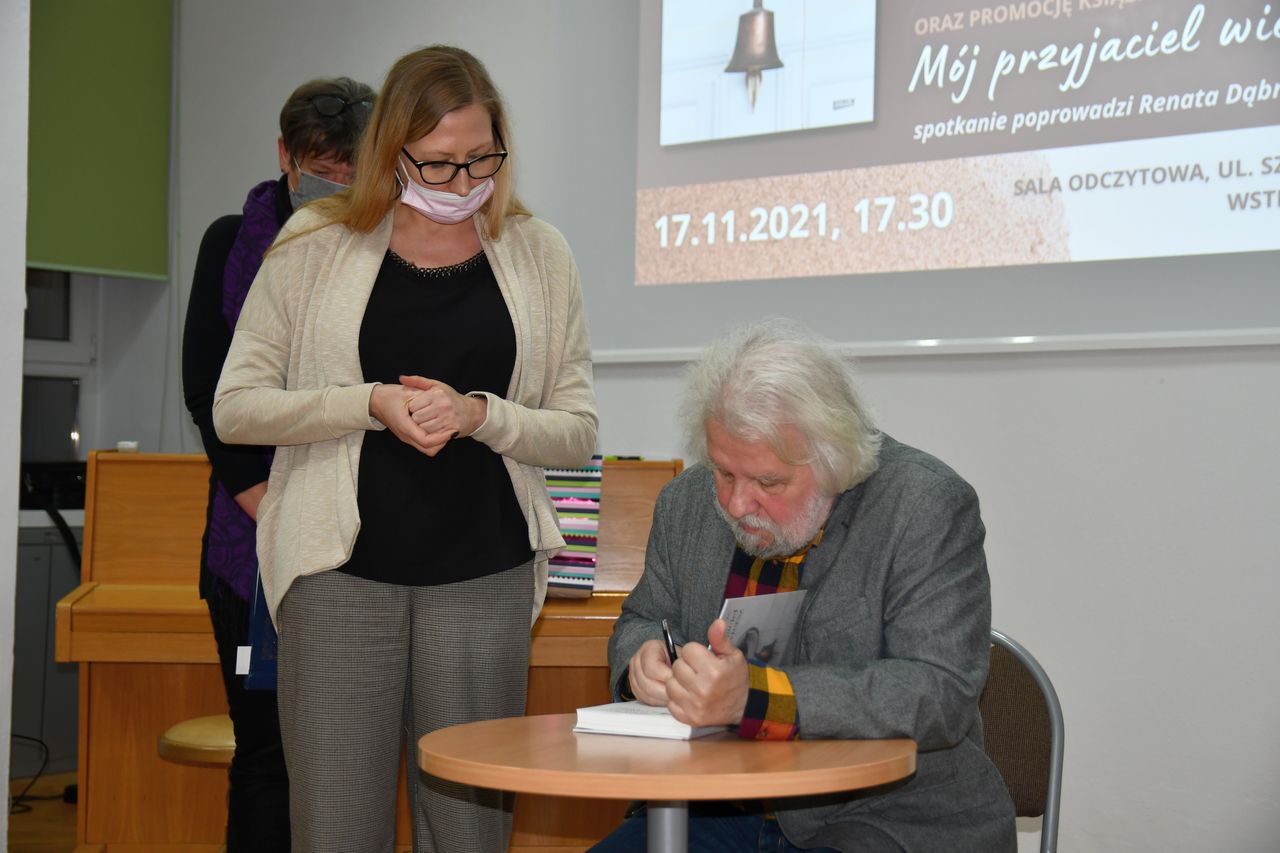Pretekstem do spotkania było ukazanie się Jego najnowszej książki „Mój przyjaciel wiersz”. Książki niezwykłej i dla samego jej twórcy szalenie osobistej, prywatnej i bardzo intymnej. To nowy rodzaj antologii poezji, bo oprócz samych wierszy kilkudziesięciu poetów, pisarzy (w tym także noblistów) znajdują się tam opowieści o każdym utworze, każdym twórcy, i to opowieści nieznane, ale przede wszystkim kameralne wręcz zażyłe. Zatrzymuje ona również obrazy i portrety ludzi, których już z nami nie ma. Utwory ukazujące się wcześniej cyklicznie w miesięczniku „Znak” w latach 2011-2018 stworzyły w książce zupełnie nową jakość, dały przestrzeń do spotkania także z ich twórcami.