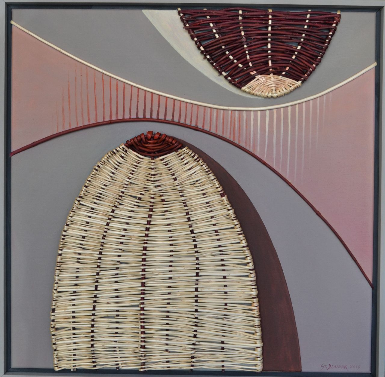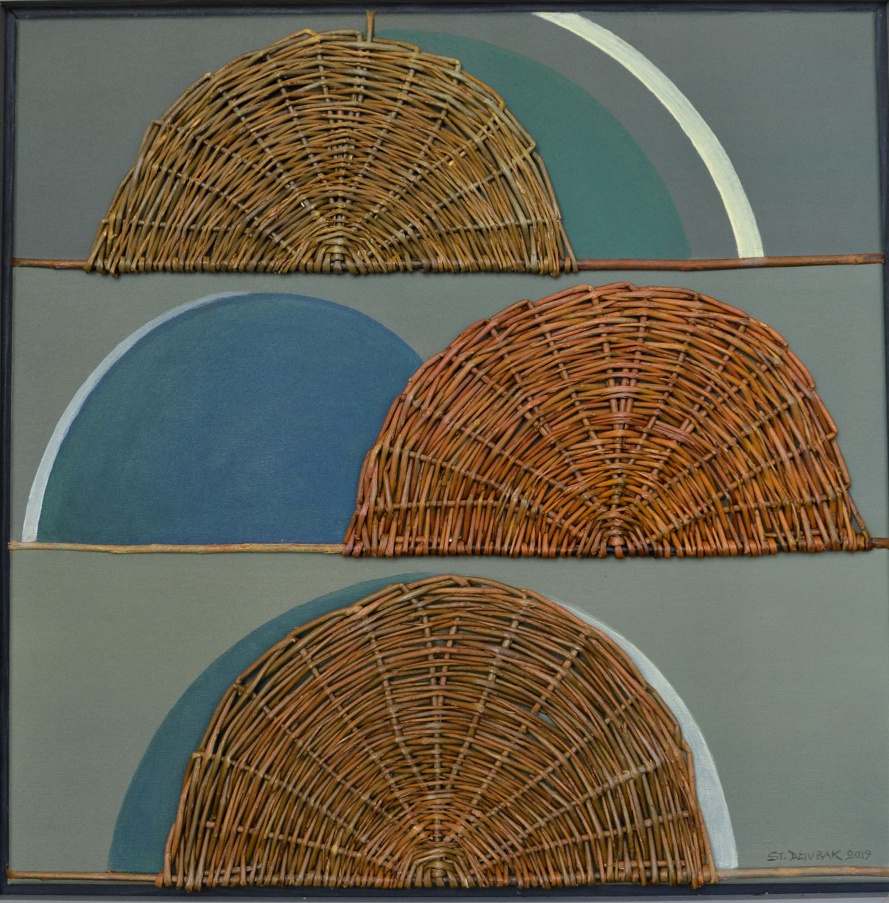 Po doświadczeniach autora z wikliną wykorzystywaną jako materiał do projektowania przedmiotów użytkowych, medium do tworzenia rzeźb oraz form plenerowych w różnych przestrzeniach, najczęściej parków i ogrodów, przyszedł czas na jeszcze inne jej wykorzystanie. Tym razem są to kompozycje malarskie. Sploty wiklinowe służą jako działania fakturowe, a kolor naturalny tego tworzywa, jest wzbogacony kolorem farb akrylowych. Wszystko to odbywa się na powierzchni płótna i zamknięte w ramy tworzy abstrakcyjne obrazy. Takie wykorzystanie wikliny w połączeniu z kolorem, jest oryginalnym, autorskim rozwiązaniem zaproponowanym przez Stanisława Dziubaka.